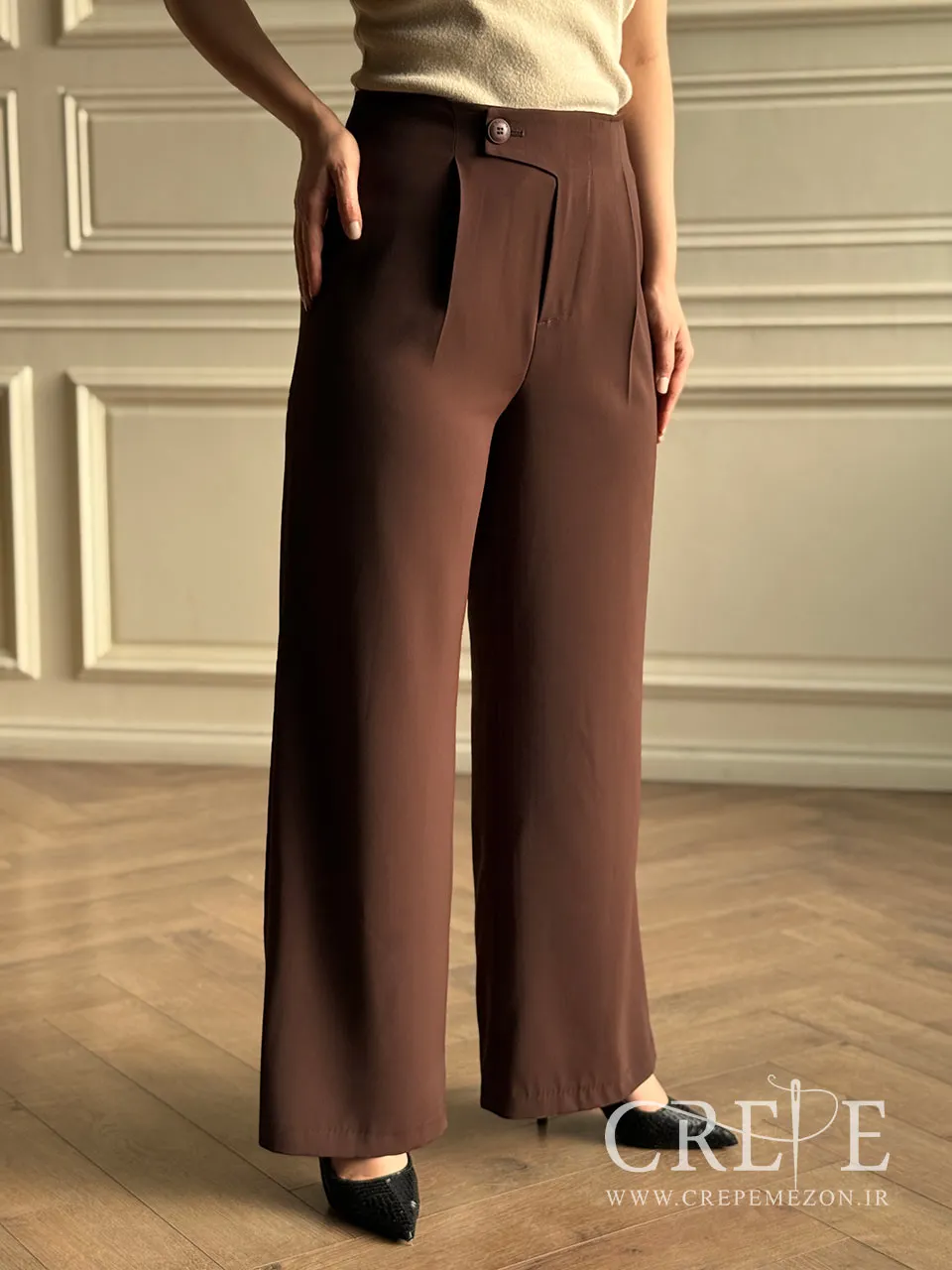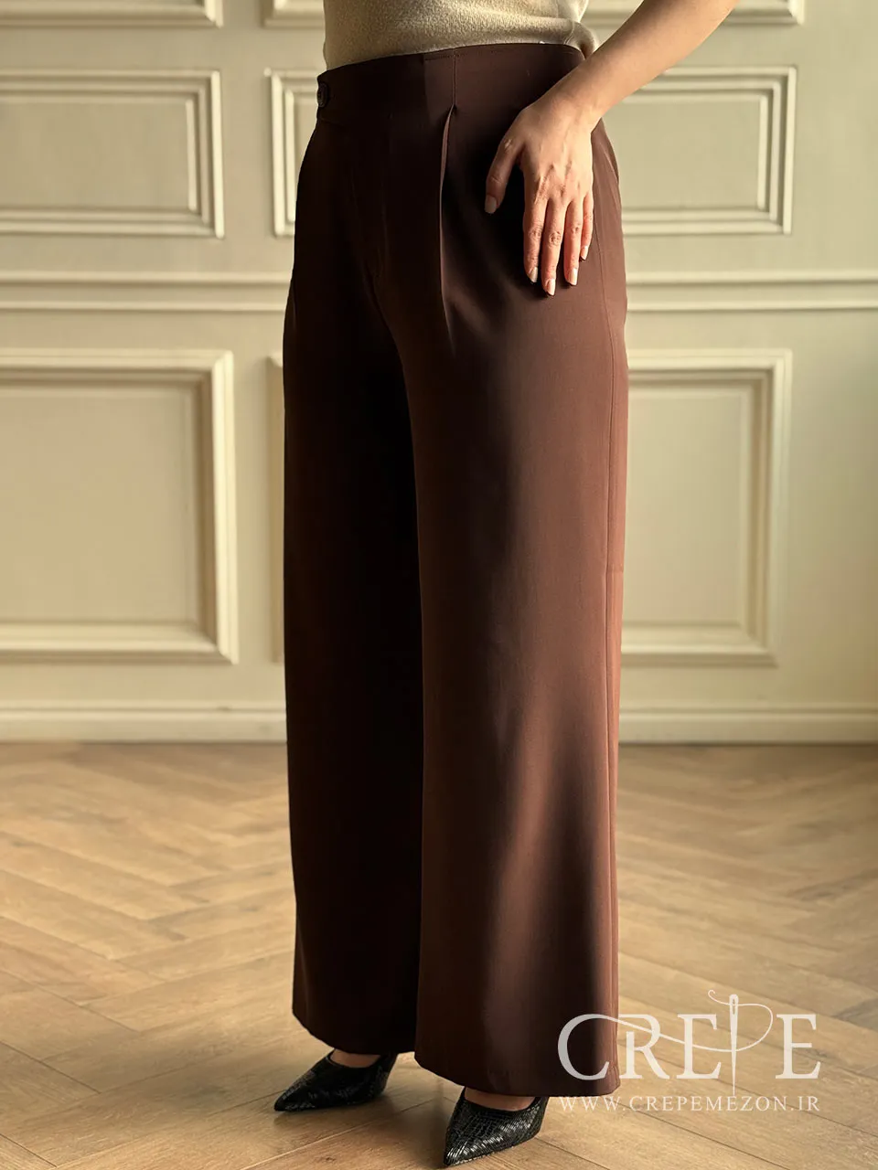 شلوار از بالا گشاد کرپ زارا یک شلوار مجلسی باکیفیت که ریزش و جذابیت زیادی در پا دارد. این شلوار در رنگبندی مشکی، سرمه ای، کرم، خاکی و قهوه ای موجود است.