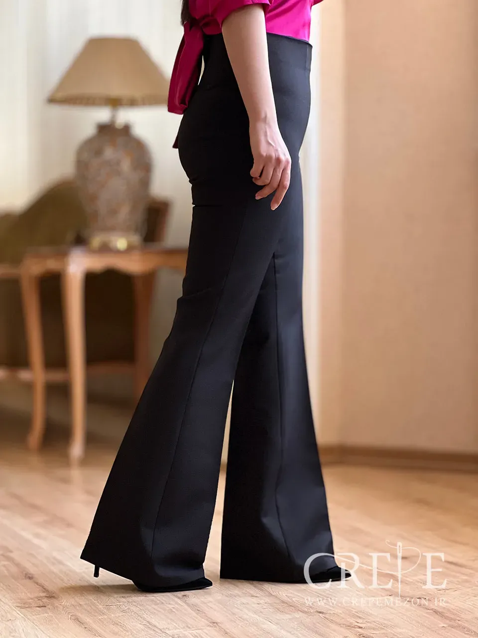 شلوار مجلسی که از قسمت زانو به پایین گشاد میشود و از بغل کمر زیپ میخورد، به دلیل طراحی خاصش، میتواند به راحتی با انواع لباسها و اکسسوریها ست شود. برای ایجاد تعادل در استایل، بلوز یا تاپی که انتخاب میکنید باید متناسب با فرم شلوار باشد. بلوزهای ساده و جذب یا تاپهای کوتاه و چیندار گزینههای مناسبی هستند. میتوانید از بلوزهایی با رنگهای متضاد یا هماهنگ با رنگ شلوار استفاده کنید. همچنین، طرحهای ساده یا نقوش ملایم میتوانند زیبایی استایل شما را دوچندان کنند. یک کت کوتاه یا جلیقهای با طراحی مدرن میتواند به استایل شما شیکتر و رسمیتر جلوه دهد.