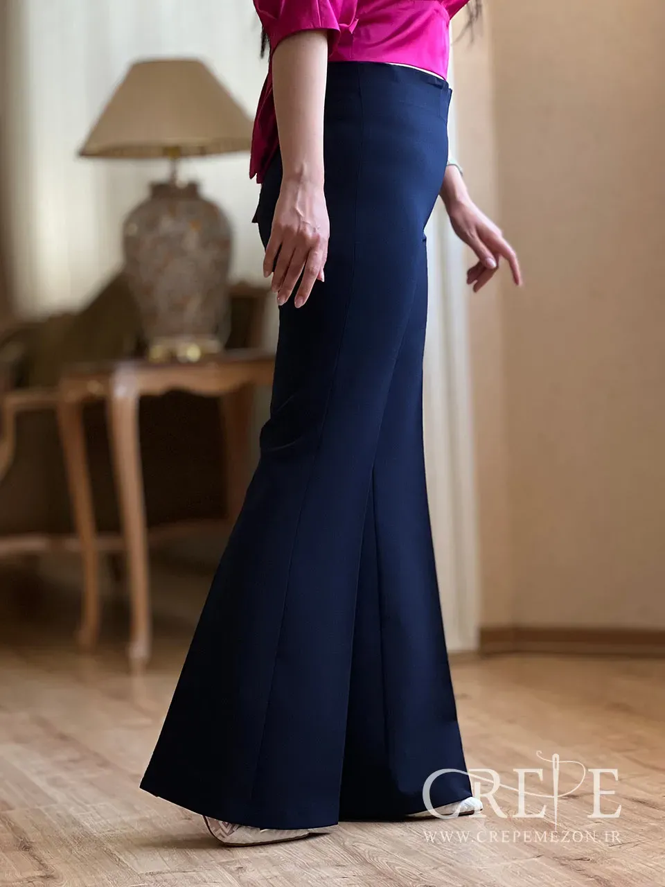 شلوار کرپ دمپا اسپانیش یک شلوار مجلسی زیبا که از جنس کرپ مازراتی اعلاست و به دلیل گرم بالا آن ایست شکیل و سکه داری در تن دارد. این شلوارها از دهه هفتاد مد شد و فقط از زانو به پایین گشاد می شود. شلوار های کرپ اسپانیش بیشتر برای استایل های رسمی استفاده می شوند. شلوار زنانه بغل زیپ از شلوار های ترند و پر طرفدار این روزهای ایران و جهان است. از سری شلوار هایی است که به همه می آید و اهمیتی ندارد چاق باشید یا لاغر، کوتاه یا بلند و با هر فرم اندامی که باشید می توانید این شلوار مجلسی کرپ دمپا اسپانیش را بپوشید. از آنجایی که فاق بلند هستند قد افراد را بلند تر نشان می دهند.