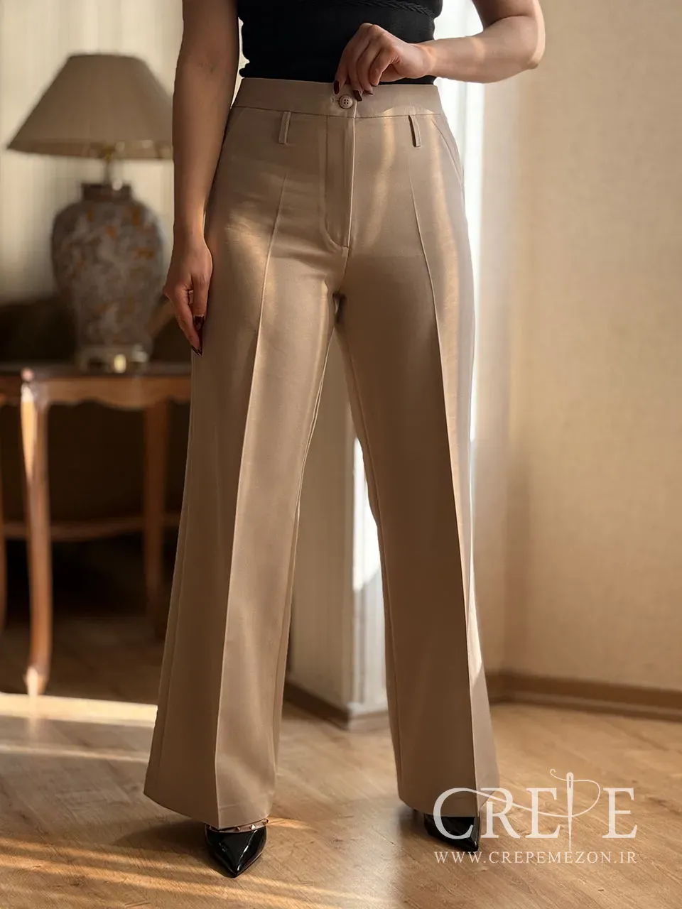 شلوار کرپ دوبل فلر یک شلوار مجلسی زیبا که گزینهای بسیار شیک و مناسب برای مجالس و مناسبتهای رسمی است. این شلوار با طراحی راسته از بالا، به خوبی به فرم بدن نشسته و ظاهری آراسته و کلاسیک به شما میبخشد. شلوار از جنس کرپ دوبل فلر دوخته شده که این جنس به دلیل خاصیت کشسانی و نرمی که دارد، راحتی و زیبایی را برای پوشنده به ارمغان میآورد. همچنین کرپ دوبل باعث میشود که شلوار در برابر چین و چروک مقاوم باشد و همیشه ظاهری مرتب داشته باشد. این شلوار با مدل از بالا راسته به خوبی بالاتنه را پوشش میدهد و بافت زیبا و خطهای عمودی آن، باعث ایجاد جلوهای بلندتر و لاغرتر برای پاها میشود.