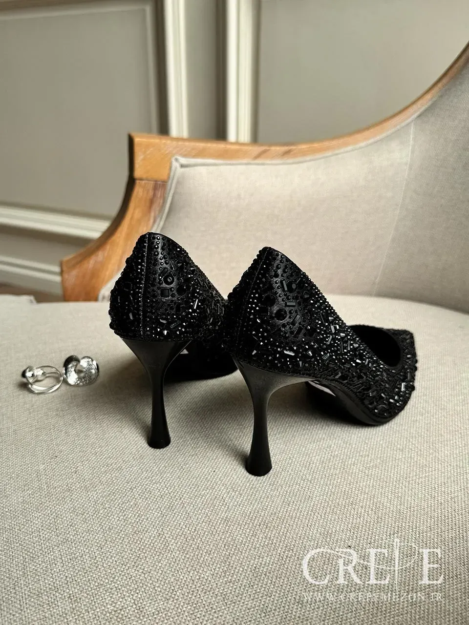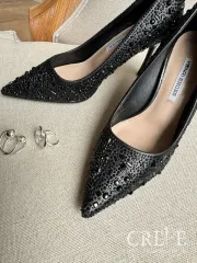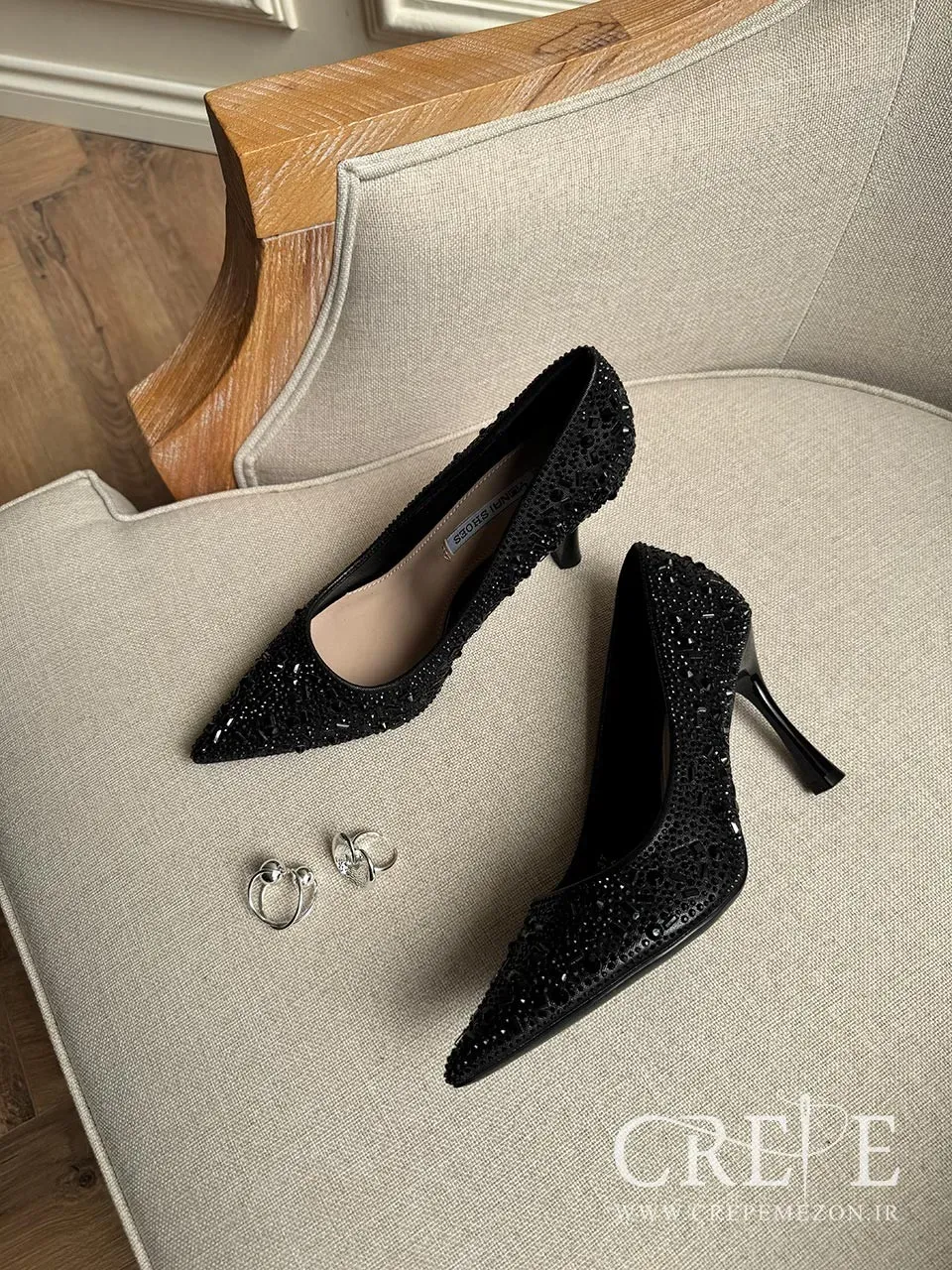 این ویژگی به زیبایی طراحی کلی کفش افزوده است. روی سطح کفش، تزیینات و نگینهای درخشانی قرار دارد که ظاهری جذاب و خاص به آن میبخشد. این نگینها بهویژه در شرایط نورپردازی روشن، جلوهای زیبا و درخشان دارند. پاشنه کفش 9.5 سانتیمتر ارتفاع دارد که به خانمها کمک میکند تا ظاهری بلندتر و خوشاندامتر داشته باشند، در عین حال که این پاشنه بهخوبی از نظر راحتی طراحی شده است. این کفش در دو رنگ مشکی و نقرهای موجود است. رنگ مشکی این کفش کلاسیک و مناسب برای هر نوع مهمانی و مجالس رسمی است.