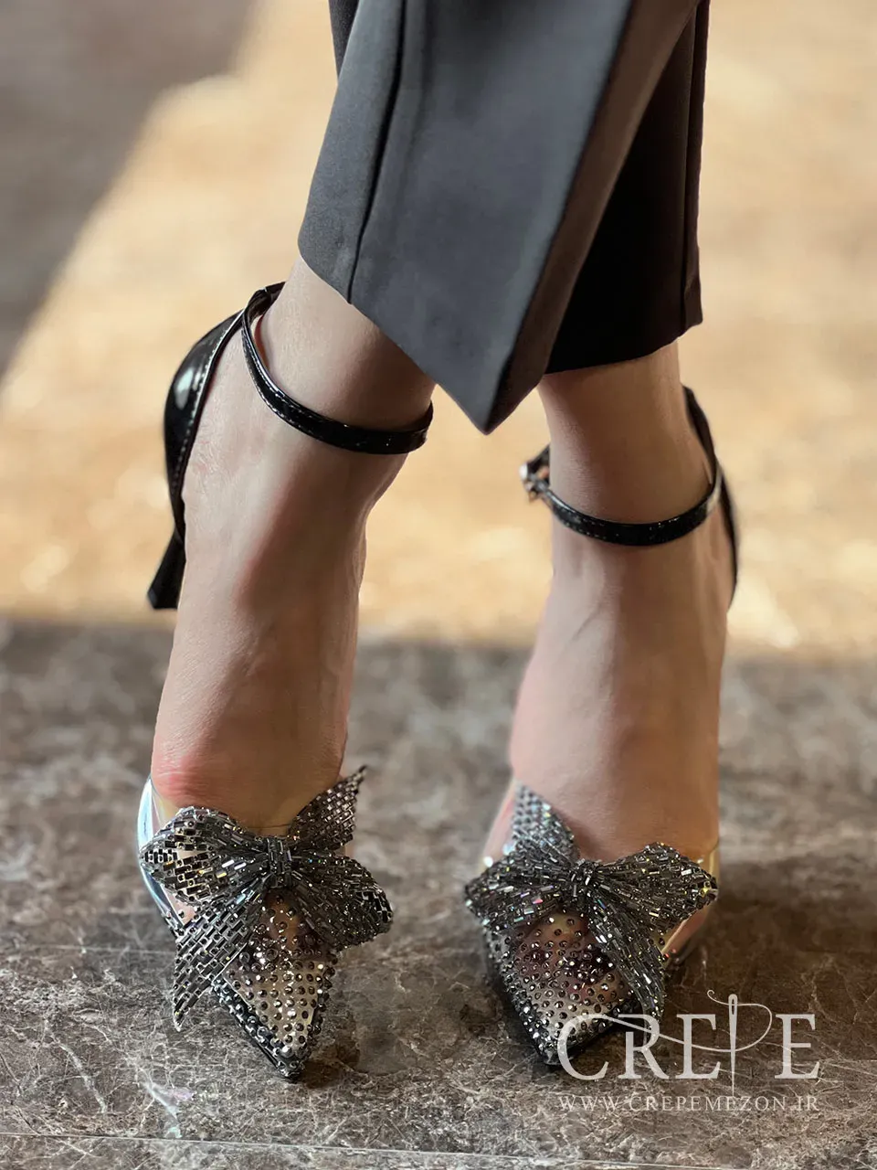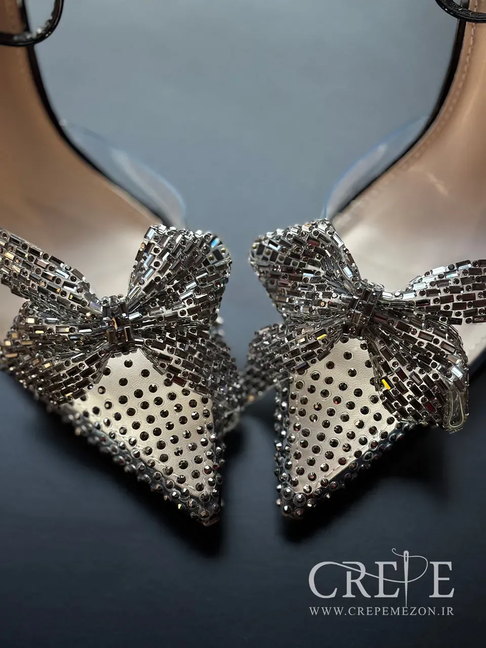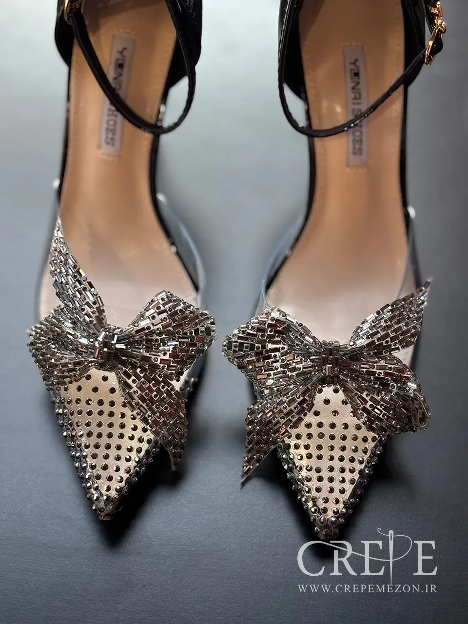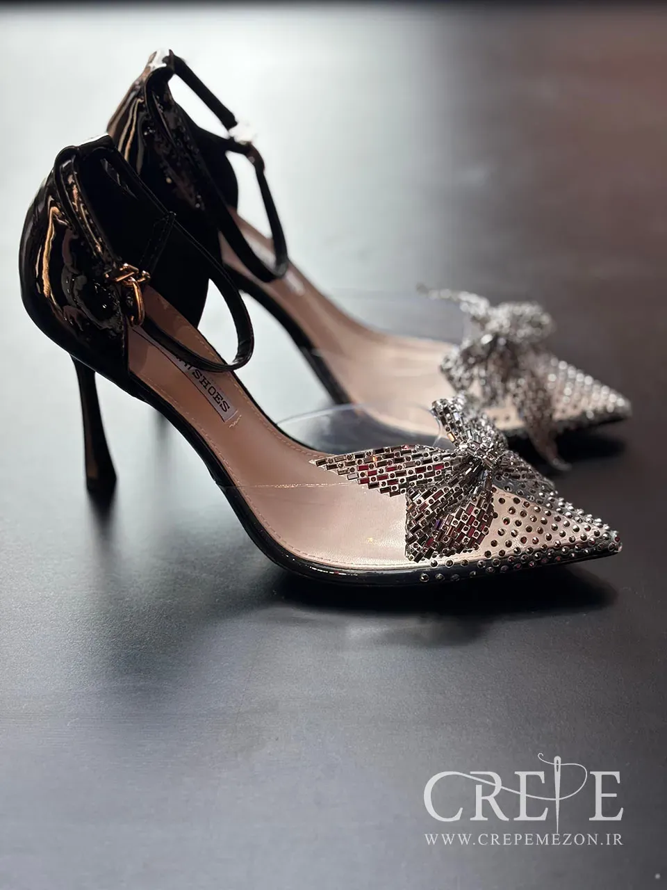کفش جلو پاپیونی نگین دار پاشنه 10سانت