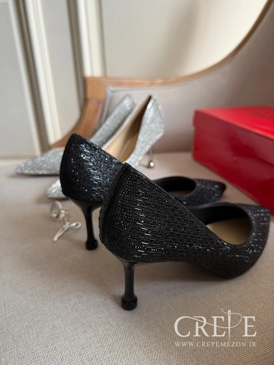 کفش مجلسی تمام نگین پاشنه 7 سانت