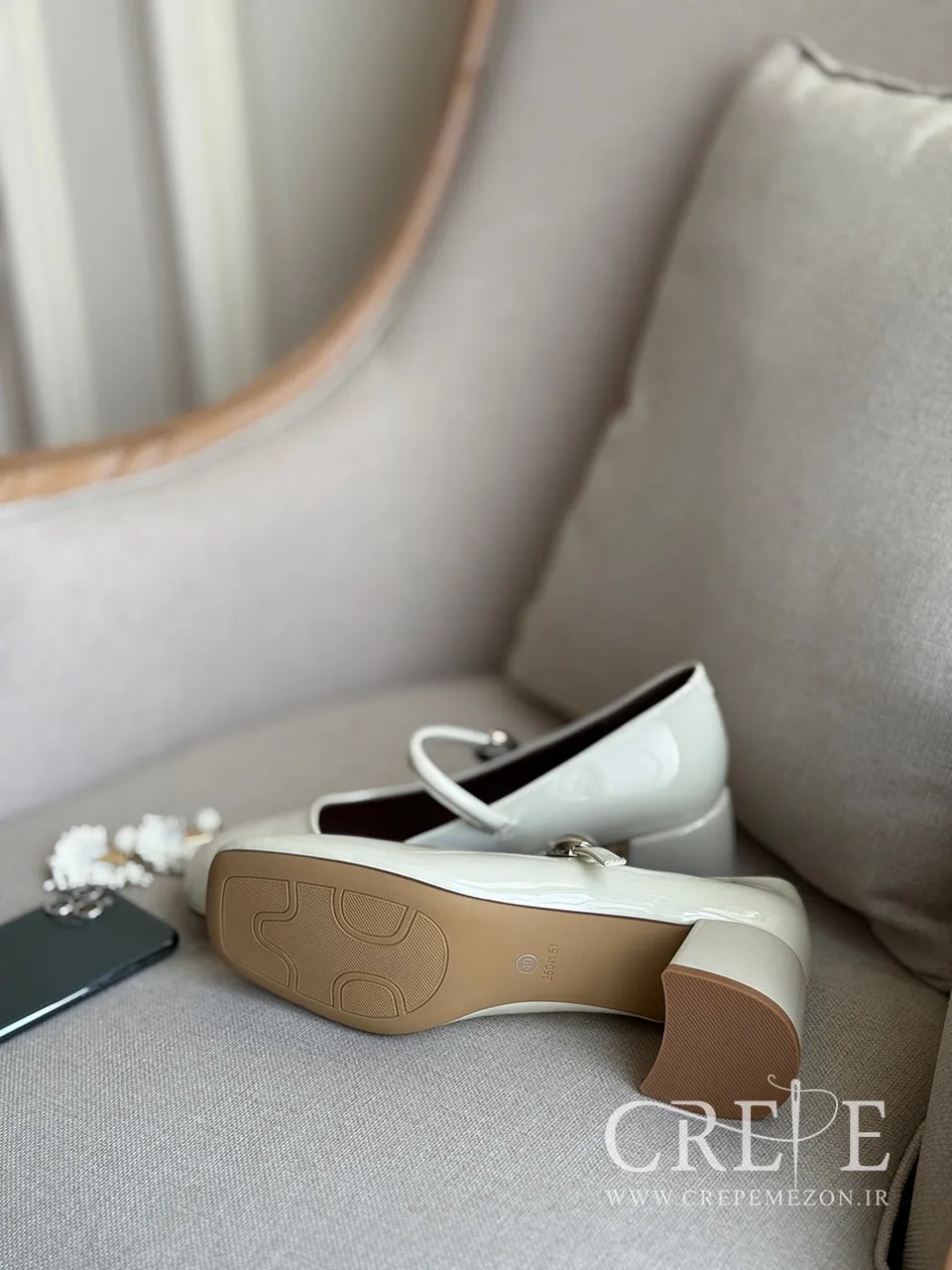 کفش ورنی یراق بیضی پاشنه 6 سانت