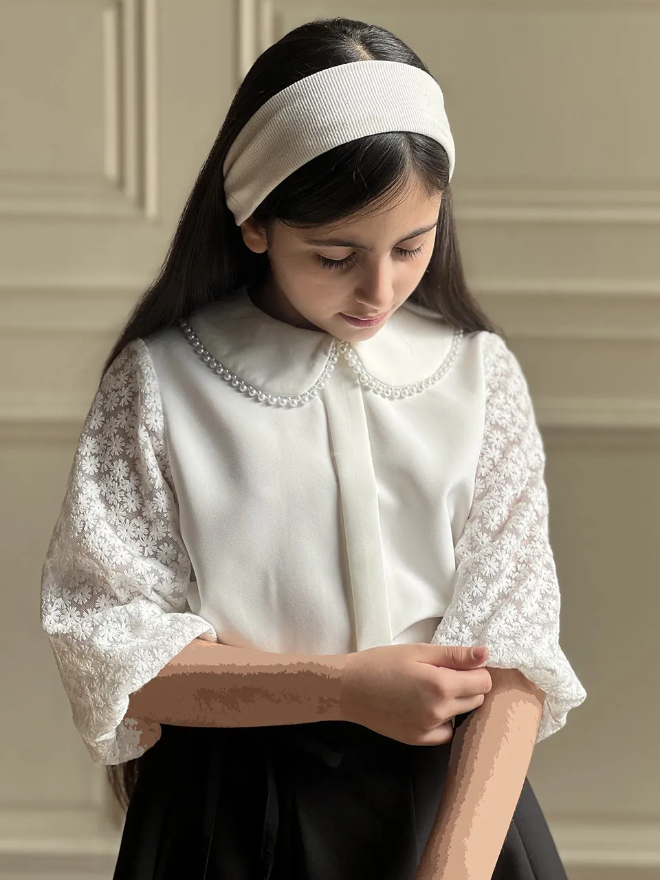 شومیز آستین گیپور یقه مرواریدی
