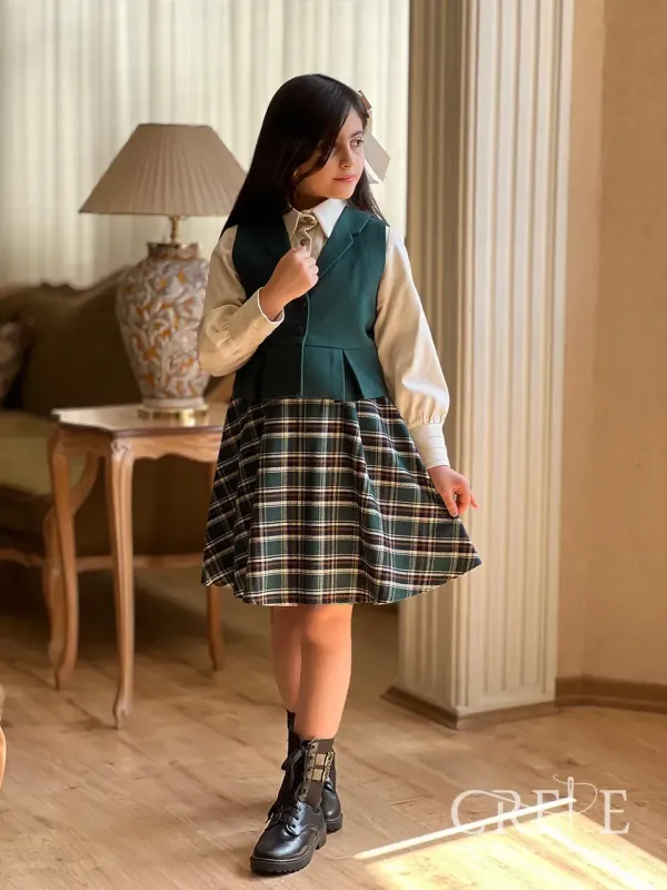 شامل : شومیز لینن - جلیقه کشمیر سپاهان اصفهان ساده - دامن طرحدار چهارخونه کشمیر سپاهان اصفهان