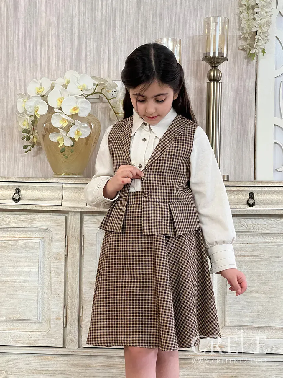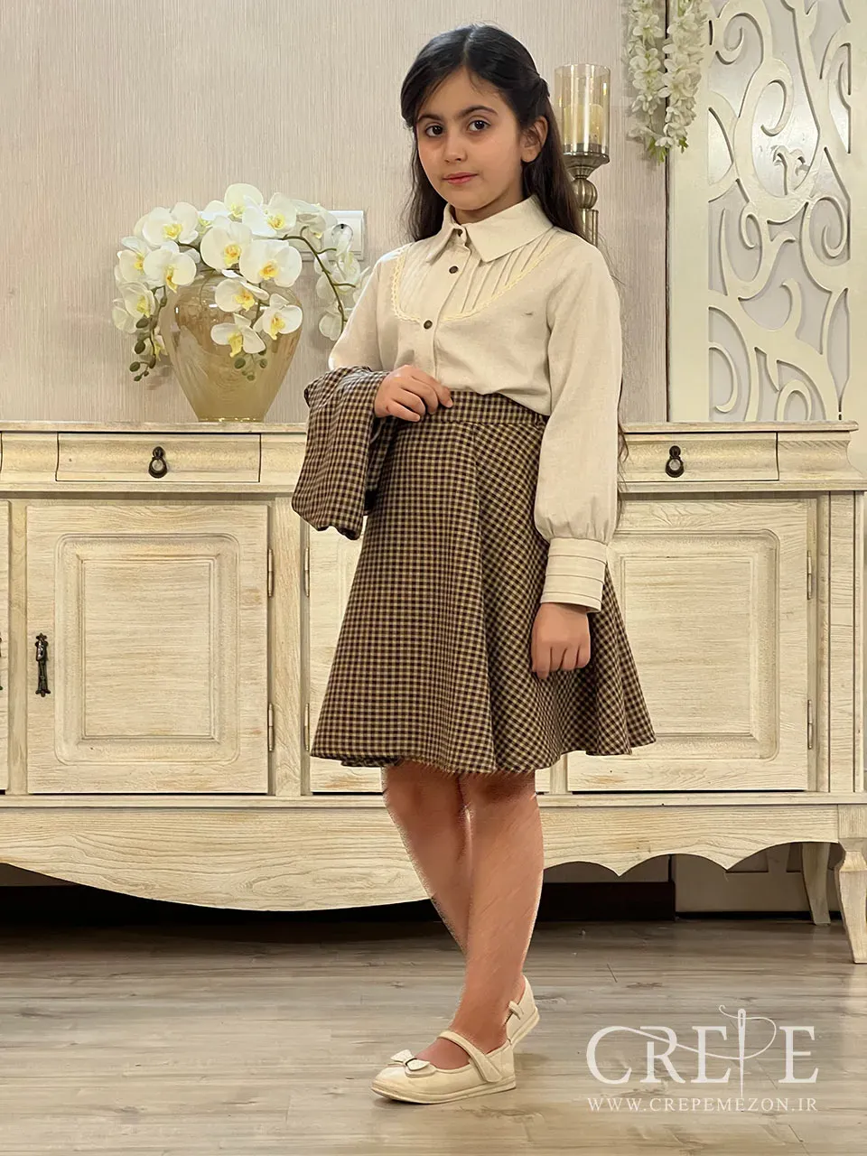 دامن وجلیقه از جنس کشمیر چهارخونه ریز بهاره سپاهان اصفهان دوخته شده و از لحاظ کیفیت پارچه فوق العاده با کیفیت است .