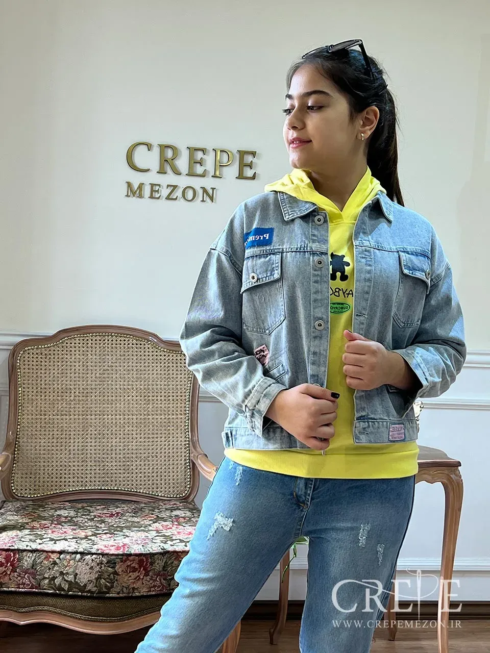 ست کت جین با رنگ آبی یخی وهودی لیمویی یک ست اسپرت و شیک