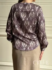 شومیز چپ و راستی یک شومیز مجلسی شیک و خاص است که با طراحی منحصر به فرد و جزئیات دقیق، جذابیت زیادی دارد. این شومیز از جنس ساتن با کیفیت بالا دوخته شده است که درخشش و لطافت خاصی دارد، و حس لوکس بودن را به کاربر منتقل میکند. طرح چاپ شده بر روی پارچه، ظاهری دلربا و مجلسی به آن میبخشد. طرح گل و برگ به صورت دلنشین و هنرمندانه بر روی سطح لباس قرار گرفته است، که جلوهای مدرن و در عین حال کلاسیک دارد. رنگ کلی شامل رنگهای طلایی، نقرهای، مشکی، یا رنگهای ملایم و خنثی است که در کنار طرح چاپی، حس زرق و برق و زیبایی را القا میکند. طرح چاپی به صورت دلبرانه و هنرمندانه طراحی شده است، که زیبایی لباس را چند برابر میکند و برای مجالس و مهمانیهای خاص مناسب است.
