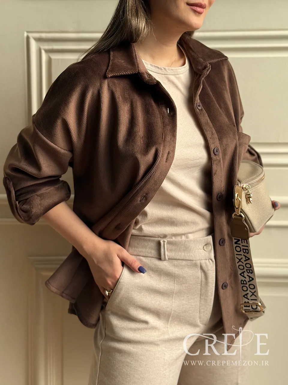 شومیز مانتویی مخمل کبریتی