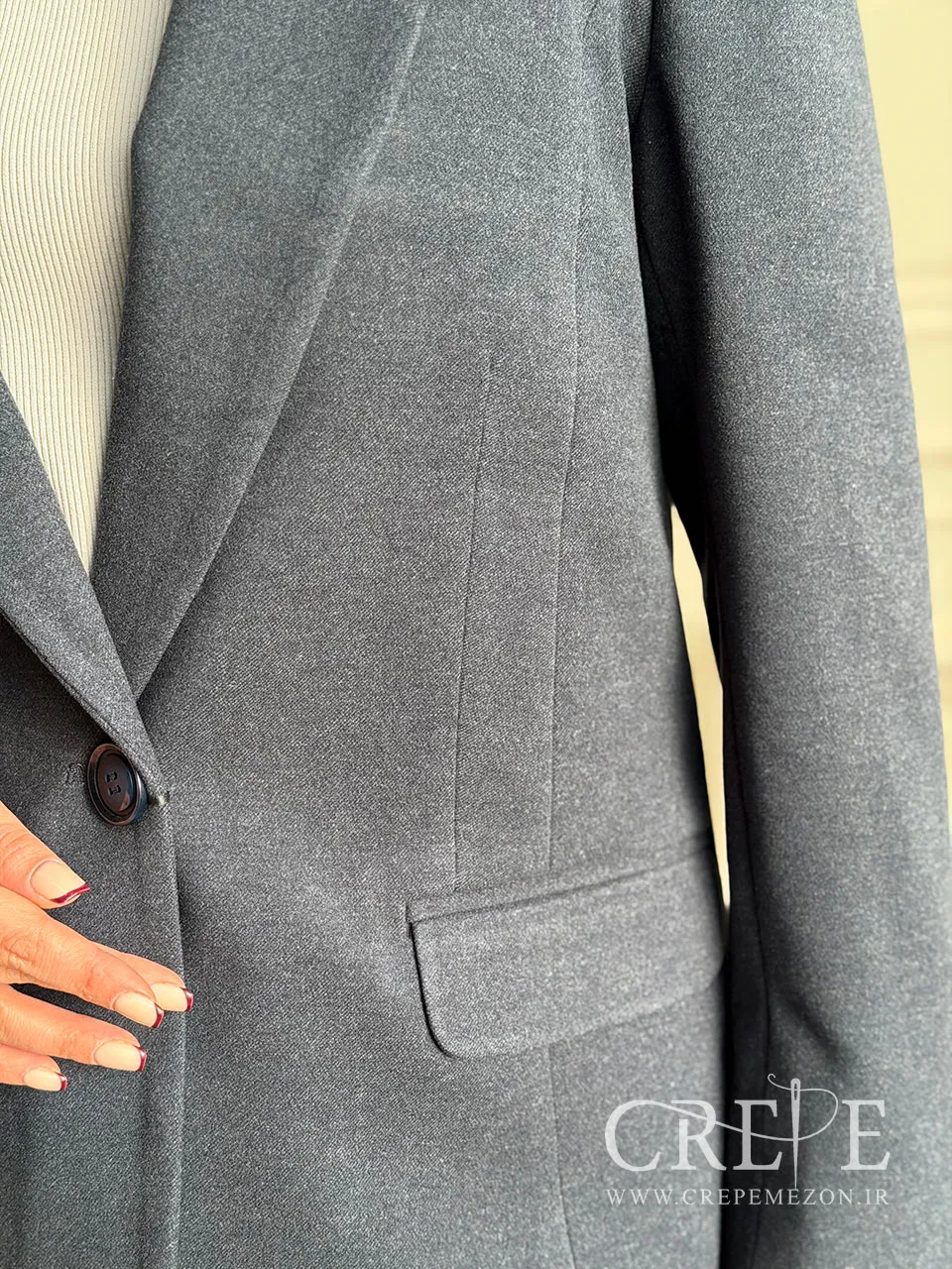 این تنوع رنگ به شما این امکان را میدهد که با توجه به سلیقه و نیاز خود، رنگ مناسب را انتخاب کنید. کت دارای یقه بلیزر است که به طراحی آن جلوهای کلاسیک و شیک میدهد. این نوع یقه به راحتی با انواع لباسها و اکسسوریها ست میشود. کت با تک دکمه بسته میشود که این طراحی به سادگی و زیبایی کت افزوده و به راحتی میتوانید آن را بپوشید. کت دارای دو فیلتاب جیب است که بیشتر جنبه تزیینی دارند و کاربردی نیستند. این جزئیات به زیبایی و طراحی کت افزوده و ظاهری شیک به آن میدهد. این کت دارای لایه داخلی تمام آستر است که به افزایش راحتی و کیفیت آن کمک میکند.