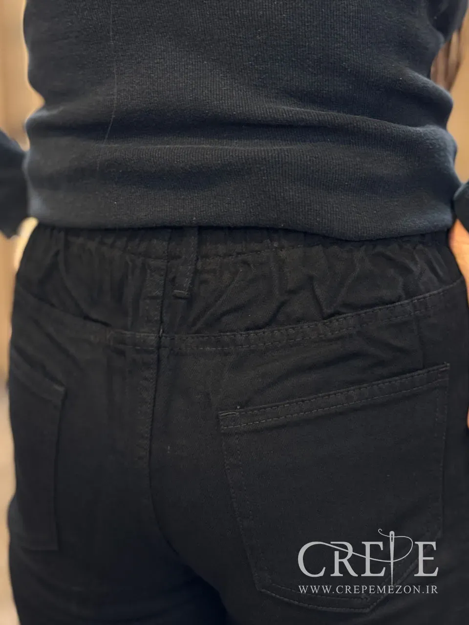 مام استایل کمر کش یک شلوار جین کاربردی که در رنگ مشکی ارائه شده و گزینه مناسبی برای استایل های کژوال و استفاده برای دانشگاه، سرکار یا حتی روزانه می باشد.