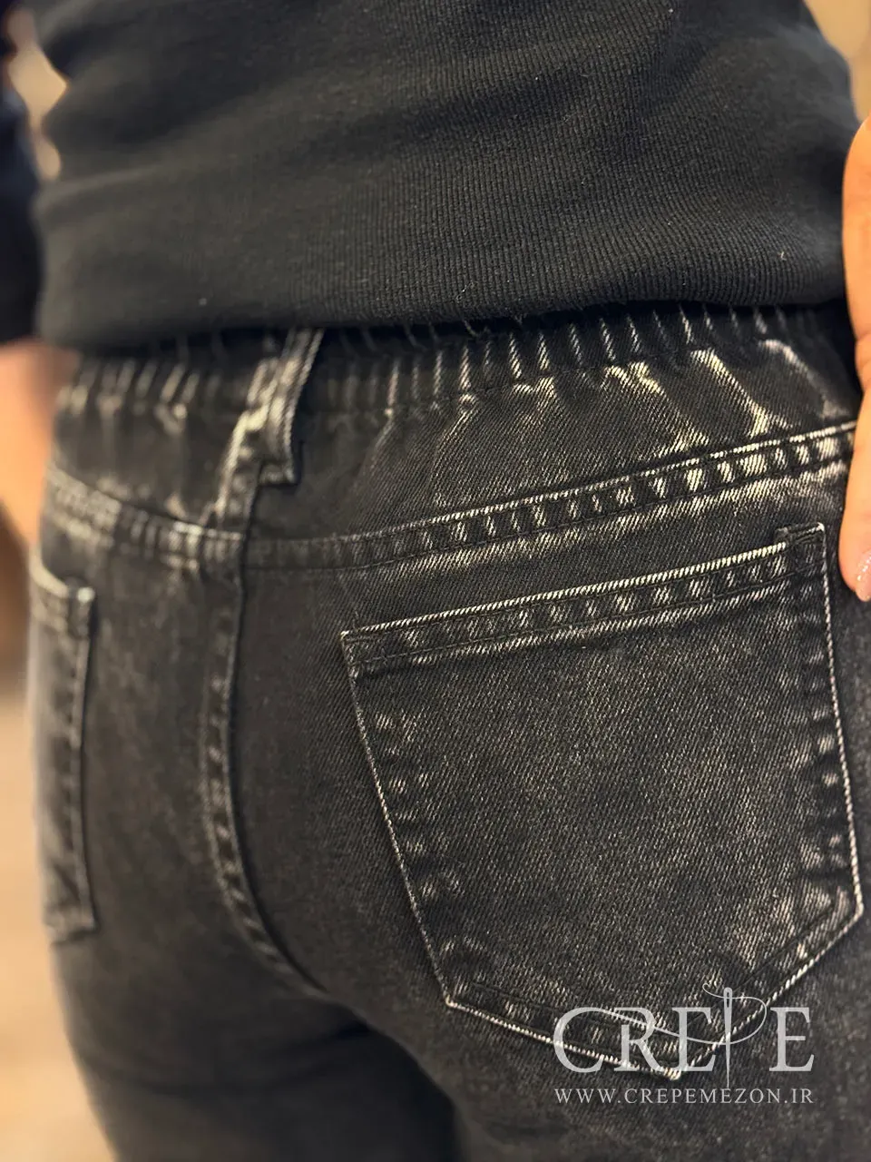 شلوارهای جین معمولاً از پارچهای به نام دنیم تولید میشوند. دنیم نوعی پارچه بافتنی است که از الیاف پنبهای ساخته شده و به دلیل بافت محکم و مقاوم خود شناخته میشود. این پارچه به طور عمومی به صورت بافت کجراه تولید میشود که باعث میشود شلوارهای جین دارای ساختاری قوی و طول عمر بالا باشند. دنیم معمولاً در دو رنگ اصلی تولید میشود. رنگ ذغالی یکی از کاربردی ترین رنگ ها در میان شلوار های جین کمرکش است. همچنین، برخی از شلوارهای جین ممکن است با استفاده از تکنیکهای مختلف مانند شستوشو، سایش یا پردازشهای شیمیایی، ظاهری خاص و متفاوت پیدا کنند.
