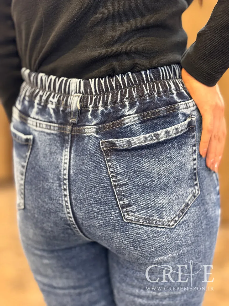 4- شلوار جین کمرکش را بهتر است با پارچه های جین و ترجیحا همرنگ شستشو دهید :