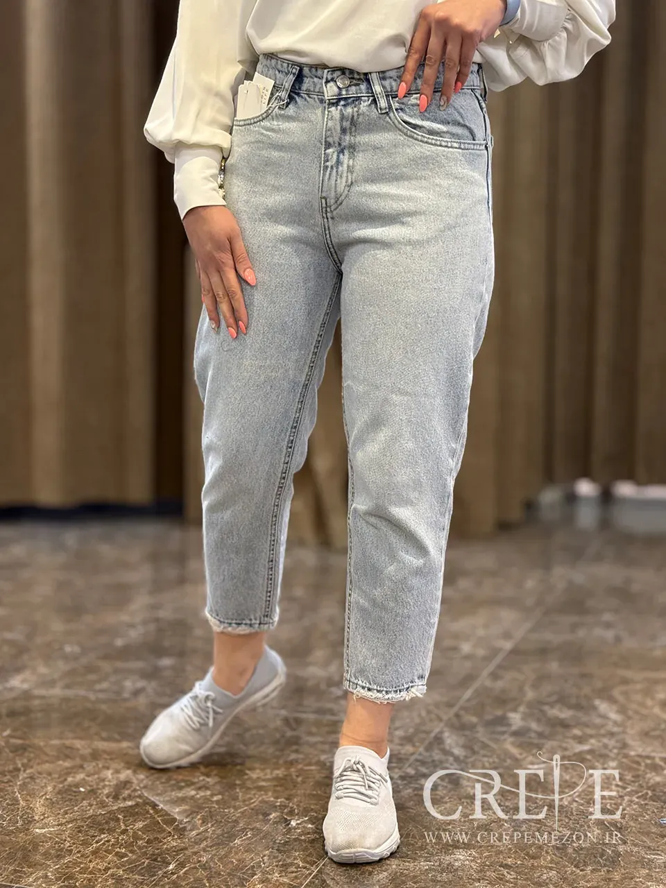 جین مام استایل یک شلوار جین کاربردی که در رنگ آبی یخی ارائه شده و گزینه مناسبی برای استایل های کژوال و استفاده روزانه، دانشگاه، سرکار یا مسافرت می باشد.