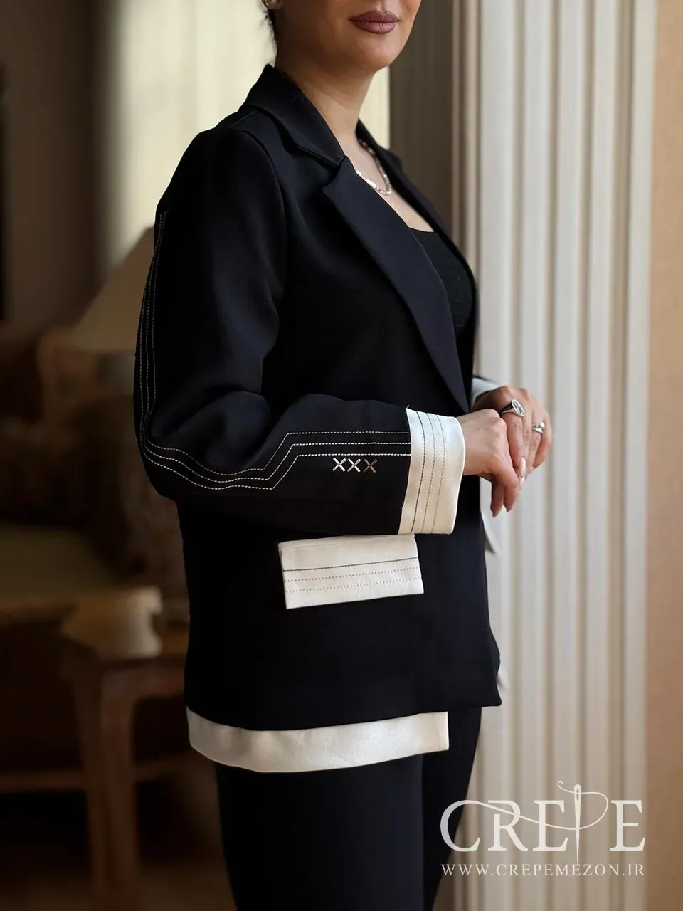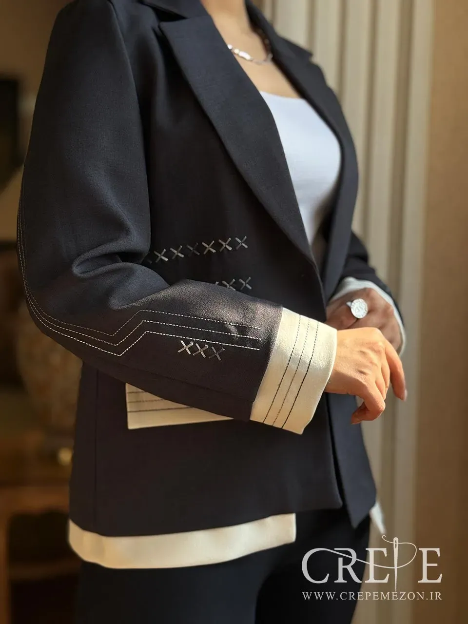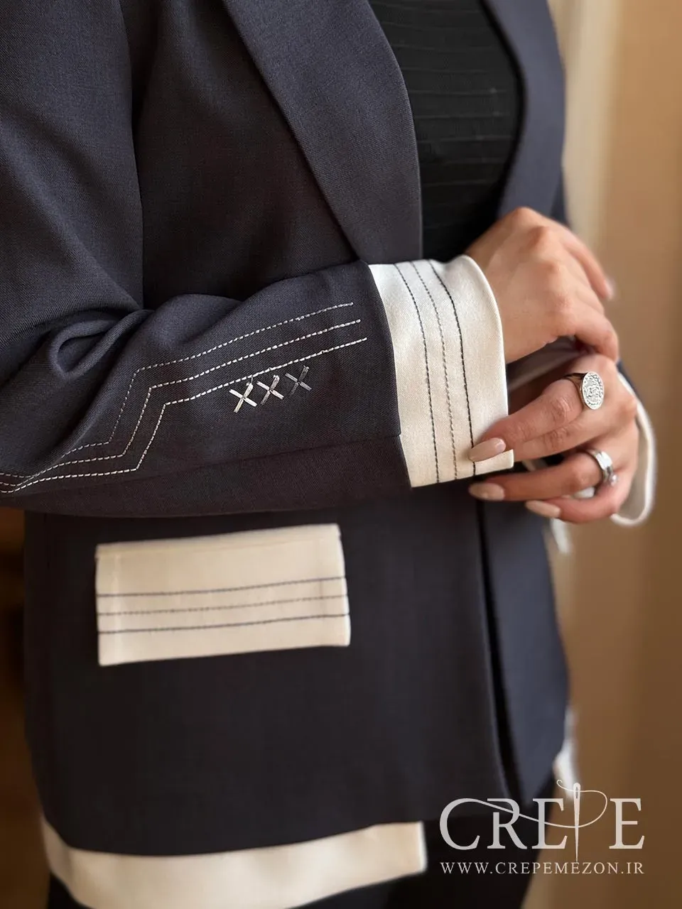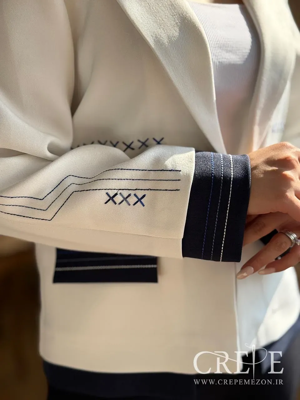 مچ آستینها با پارچه سفید طراحی شده است که به زیبایی و هماهنگی با دیگر جزئیات مانتو ضربدری کمک میکند. مانتو با طرح ضربدری تزیین شده است که این جزئیات به آن جلوهای خاص و مدرن میبخشد. این طرح به منحصر به فرد شدن مانتو کمک کرده و آن را از دیگر مدلها متمایز میکند. این مانتو مجلسی با طراحی زیبا، کارایی و کیفیت بالای خود، گزینهای عالی برای استفاده در مهمانیها و مجالس رسمی است. ترکیب رنگهای مختلف و جزئیات منحصر به فرد آن، میتواند به هر استایلی جلوهای خاص ببخشد و به شما اعتماد به نفس بیشتری بدهد.