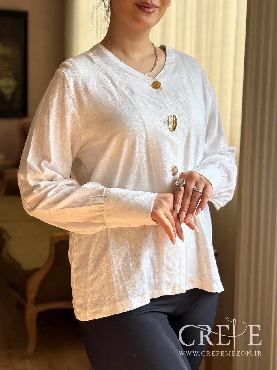 آستینهای بلند و مچی با یک ردیف دکمه، به شومیز ظاهری کلاسیک و شیک میبخشد و علاوه بر زیبایی، راحتی را نیز فراهم میکند. یقه هفت شومیز، گردن را به خوبی نمایان کرده و به صورت کلی ظاهری زیبا و زنانه به استایل میدهد. این ست مجلسی دو تیکه میتواند به راحتی با انواع اکسسوریها و کفشهای مجلسی ترکیب شود و به شما امکان میدهد تا در هر مجلسی با اعتماد به نفس و شیک به نظر برسید. رنگهای مختلف دو تیکه ژاکارد لینن نیز به شما این امکان را میدهد که بسته به سلیقه و نوع مراسم، بهترین گزینه را انتخاب کنید.