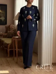 این کت مجلسی جیب قلبی طراحی خاص و جذابی دارد و میتواند به راحتی با سایر لباسها و اکسسوریها ست شود. شلوارهای رسمی و کلاسیک به رنگ مشکی یا سرمهای میتوانند گزینههای مناسبی باشند. این شلوارها به خوبی با کت هماهنگ میشوند و ظاهری شیک و متناسب ایجاد میکنند. اگر به دنبال یک استایل کژوالتر هستید، میتوانید از شلوار جین تیره و فیت استفاده کنید. این ترکیب میتواند شکلی مدرن و راحت به استایل شما ببخشد. یک کیف دستی کوچک به رنگ مشکی یا سرمهای که جزئیات طلایی یا نقرهای داشته باشد، میتواند به زیبایی استایل شما افزوده و ظاهری شیک ایجاد کند.