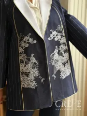 کت جین سوزن دوزی طاووس یک مانتو مجلسی زیبا که از جنس جین بوده و در سایزبندی فری و رنگ سرمه ای موجود است. همچنین قابلیت استایل مجلسی و اسپرت را همزمان دارد.