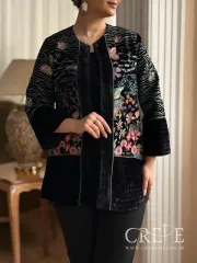 آستینهای بلند مانتو به آن ظاهری رسمیتر میدهد و در عین حال میتوان از آن در استایلهای اسپرت نیز استفاده کرد. یقه انگلیسی مانتو به طراحی آن زیبایی خاصی بخشیده و آن را برای استفاده در مجالس مختلف مناسب میسازد. جلو باز بودن مانتو نیز به راحتی حرکت و تنوع در استایل کمک میکند. پشت مانتو با طرح زیبای طاووس سوزندوزی شده که جلوهای هنری و منحصر به فرد به آن میبخشد. این طرح میتواند توجه بسیاری را جلب کند. دو طرف جلویی مانتو نیز برای هماهنگی بیشتر دارای سوزندوزیهای زیباست.