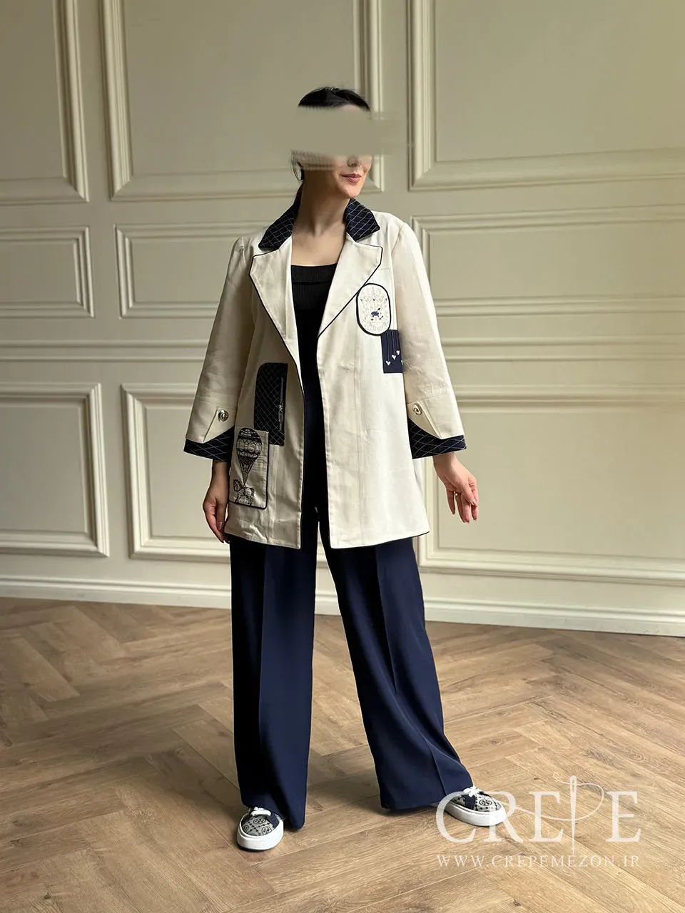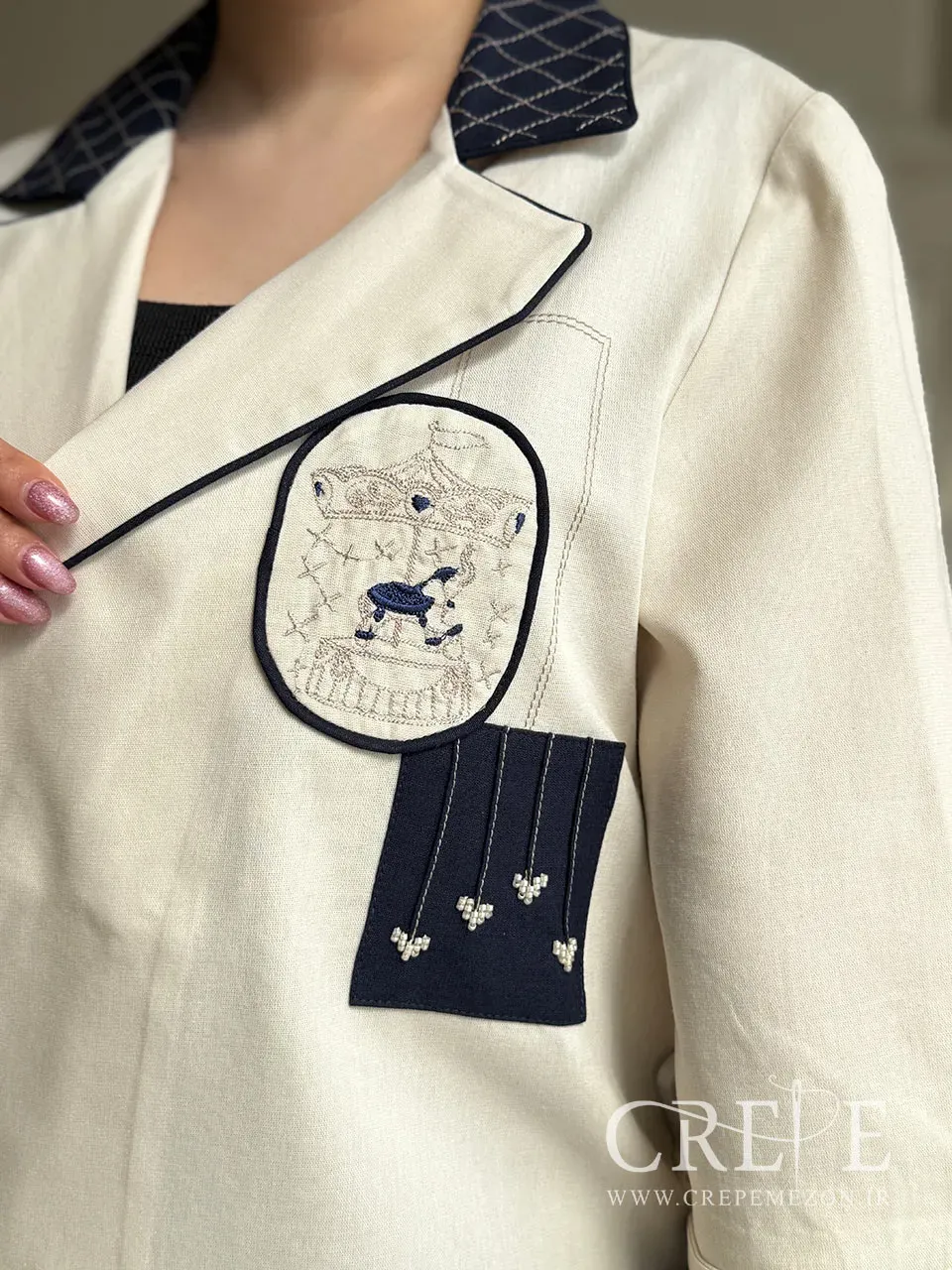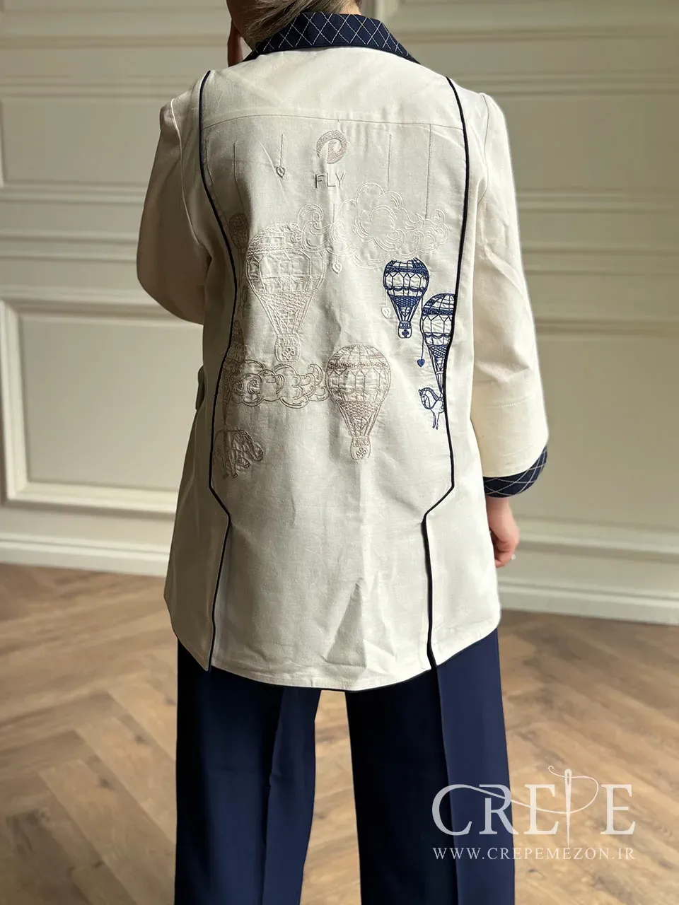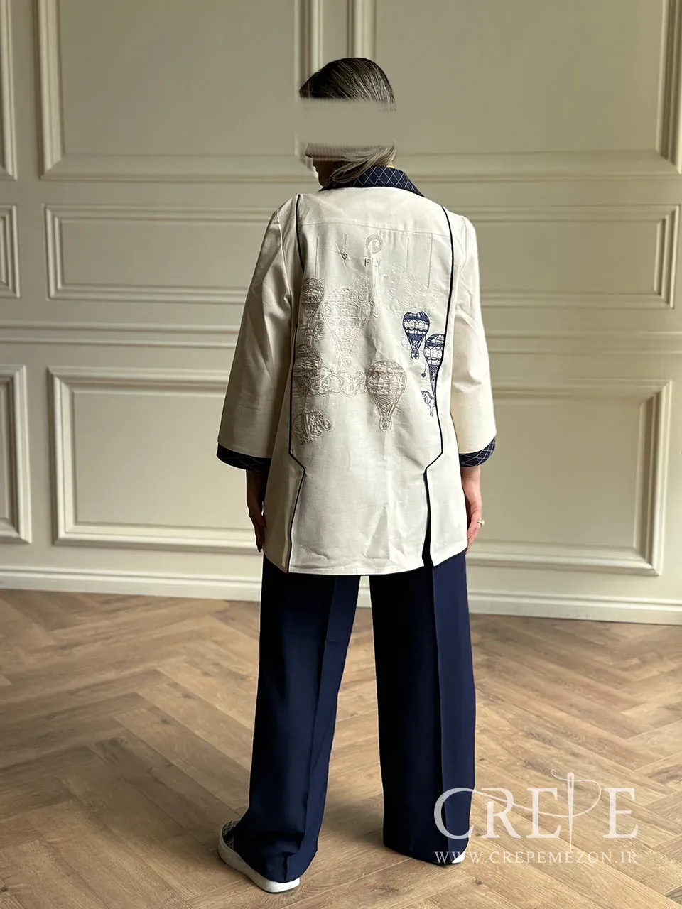 مانتو لینن سوزن دوزی یک مانتو تابستانی زیبا که با طرح بالون و شهربازی سوزن دوزی شده است. این مانتو کتی زیبا در رنگ کرم سرمه ای و سیازبندی فری موجود شده است.