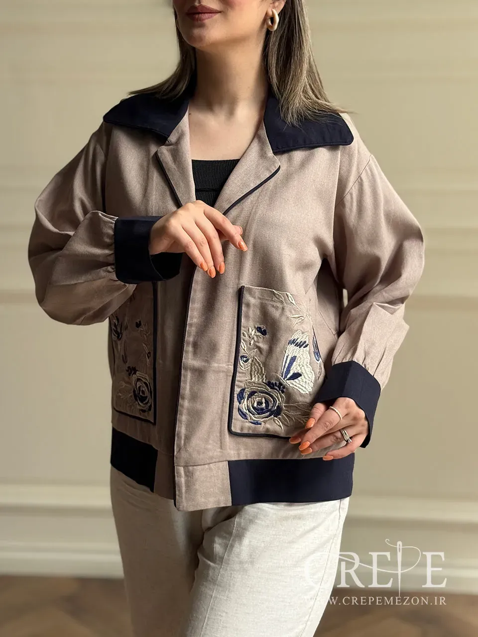 کت لینن سوزن دوزی پروانه با یقه جین یکی از انتخاب های شیک و ماندگار کمد شما خواهد بود. این کت مجلسی از جنس لینن بوده و لایه داخلی آن تماما لایه کشی شده است.