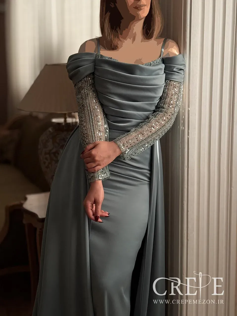 این لباس مجلسی آستین سنگدوزی به دلیل دو دامنه بودن خود هنگام راه رفتن زیبایی دلبرانه ای خواهد داشت و نگاه ها را به خود خیره می کند. همچنین آستین های سنگدوزی شده آن از دیگر دلایل مجلسی شدن این پیراهن مجلسی به شمار می رود. از آنجایی که قد آن بلند است کار راحتی برای انتخاب کفش در پیش خواهید داشت. حتما همه ی ما یک بار تجربه پوشیدن لباس های سنگین را داشته ایم و همین باعث می شود تا برای پایان یافتن مراسم لحظه شماری کنیم اما اینجا دیگر برای شما سخت خواهد بود که از آن دل بکنید!این پارچه محبوب متراکم تر از دیگر پارچه های ساتن است تا حتی زیر نور نیز اثری از بدن مشاهد نشود.