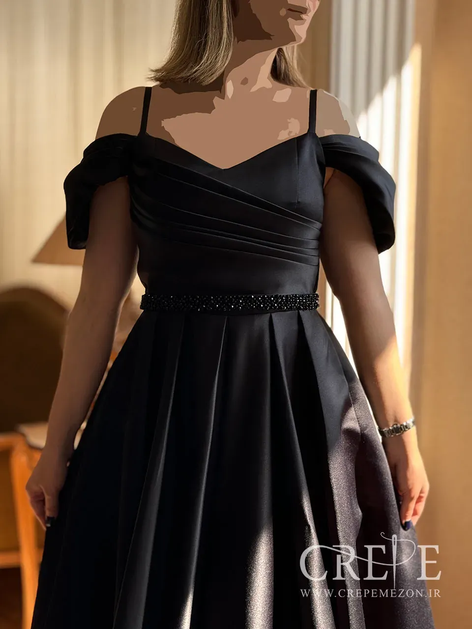 همانطور که در تصاویر می بینید یقه این پیراهن مجلسی زیبا از نوع دلبری می باشد که باعث می شود دست شما در انتخاب اکسسوری بسیار باز باشد. یقه دلبری طول گردن را بلندتر نشان میدهد از این رو برای عزیزانی که دارای گردن پهن و کوتاه تری اند مناسب است. همچنین عزیزانی که دارای طول گردن بلند هستند نیز یقه دلبری می تواند مناسب باشد در صورتی که با استفاده از چوکر و یا گردنبند های پهن از لحاظ بصری تعادل ایجاد کنند. البته حتما به خاطر داشته باشید که استفاده از گردنبند و یا چوکر در تناسب با لباس مجلسی یا اسپرت شما باشد. یقه دلبری در لباس های مشکی و یا یشمی جذابیت چشمگیرتری خواهد داشت و تضاد پوستی را با قدرت بیشتری به نمایش می گذارد.