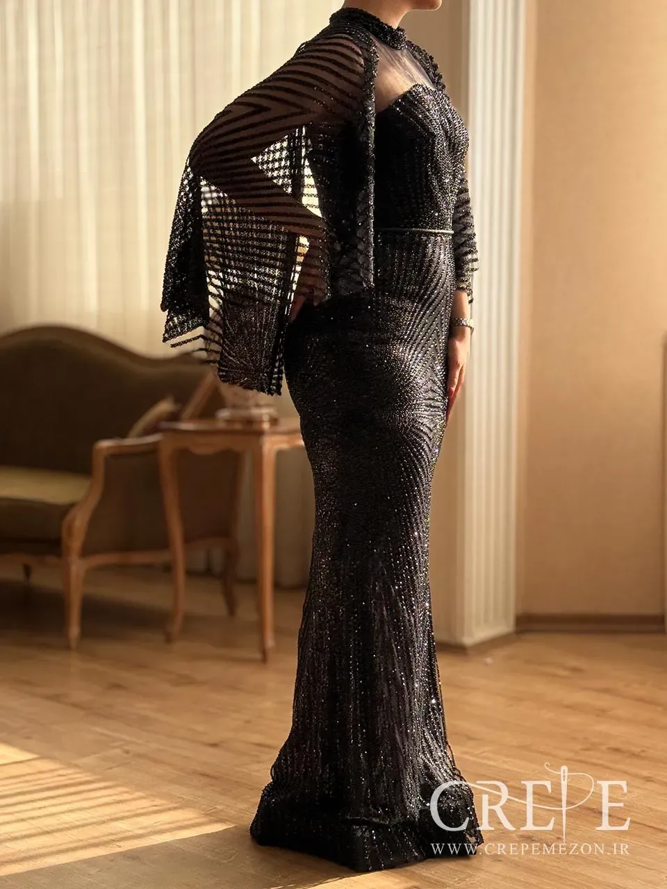 ماکسی مرواریدی شنلدار ترک