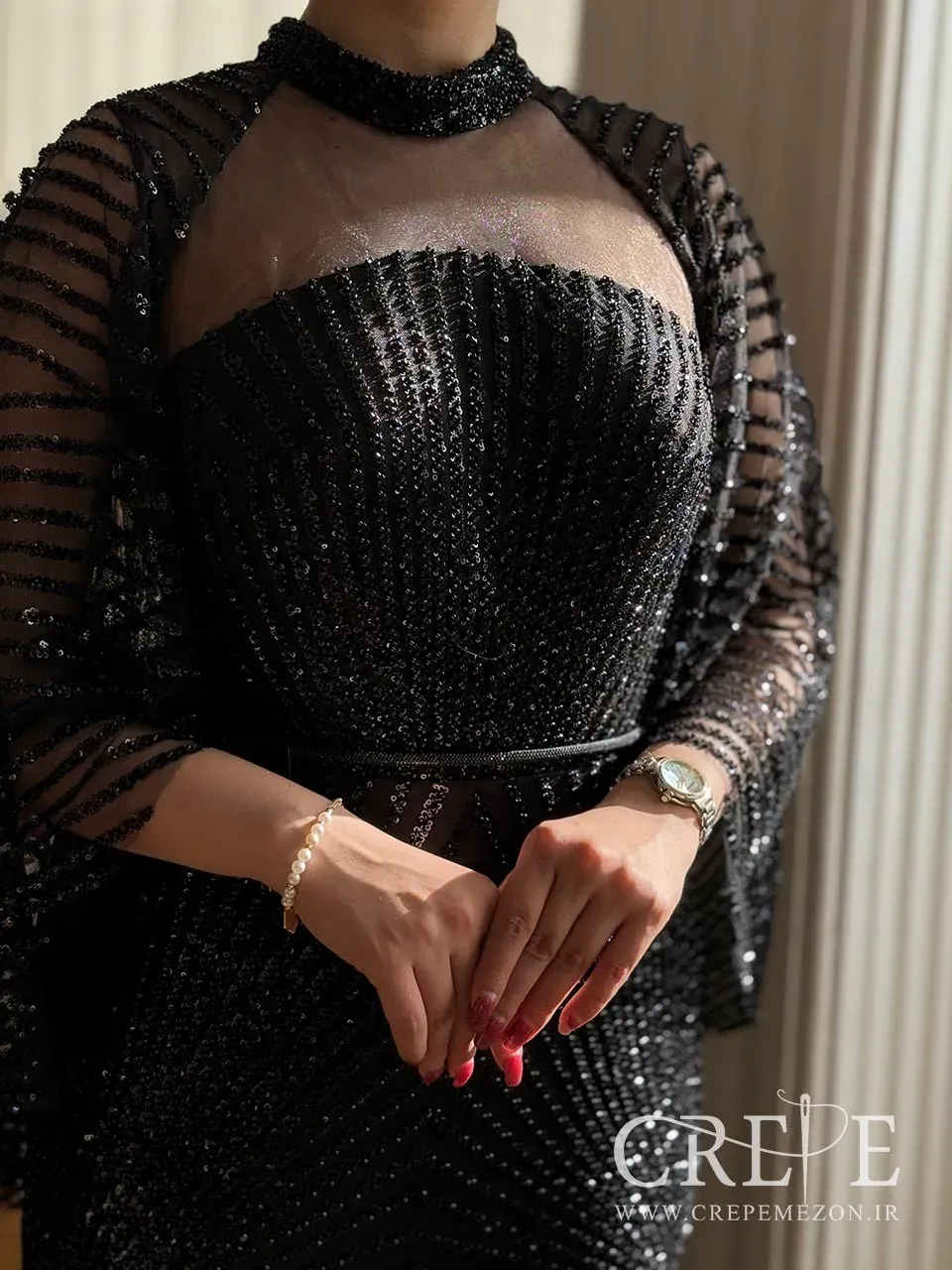 ماکسی مرواریدی شنلدار ترک یک پیراهن مجلسی زیبا که از جنس تور کار شده بود و یکی از فاخرترین ماکسی های وارداتی موجود در مزون است که کیفیت پارچه و دوخت تمیز آن حتی از تصاویر پیداست. این پیراهن مجلسی مرواریدی یک گزینه شیک و جذاب برای مناسبتهای خاص است. همانطور که در تصاویر می بینید با استفاده از ترکیب دو پارچه تور ساده و کارشده با کیفیت بالا طراحی شده که زیبایی و لطافت خاصی به آن میبخشد. یقه این پیراهن دکلته مرواریدی است که با طراحی خاص خود، جلوهای جذاب و زنانه به گردن میبخشد. یقه ایستادهی 3 سانتیمتری نیز به طراحی آن افزوده شده است که به ایجاد تعادل در ظاهر کلی پیراهن کمک میکند.