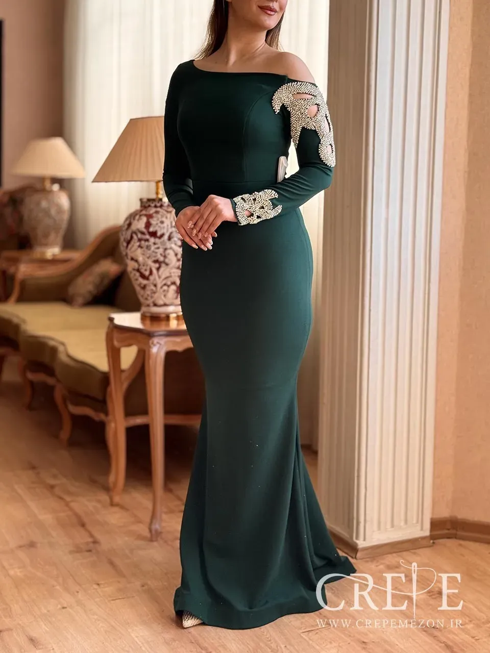 ماکسی آستین نگین دوزی یک پیراهن مجلسی زیبا که با برش اندامی هیکل را به شکل زیباتری نشان می دهد. جنس پارچه کرپ دالقیچ و تزیینات آن از نگین های فاخر می باشد.