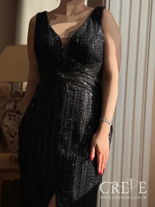 2. مراسم شب سال نو : با توجه به رنگ مشکی و جنس لوکس، این لباس میتواند انتخاب مناسبی برای جشنهای شب سال نو باشد.