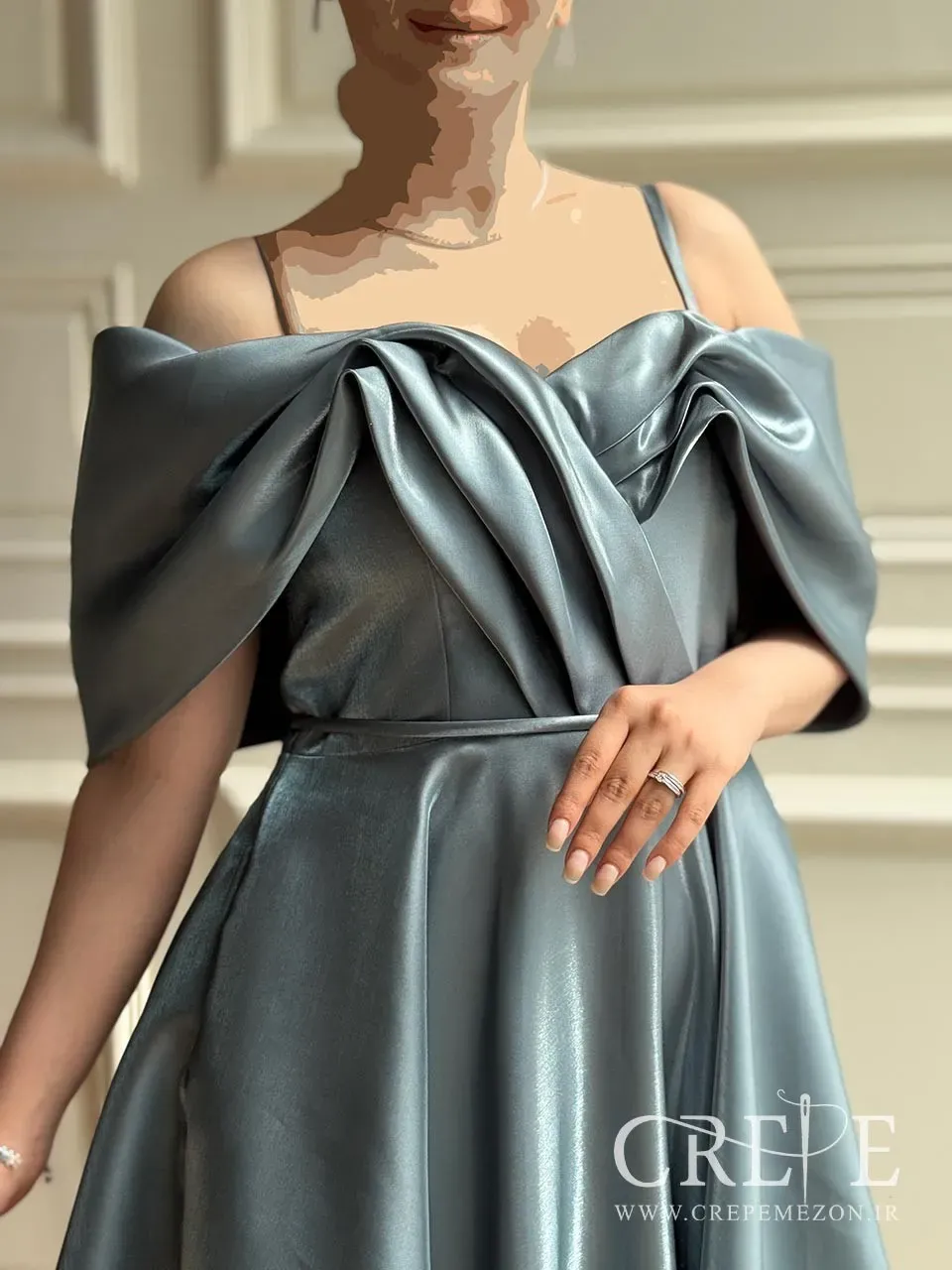 رنگ سبز دریایی این پیراهن مجلسی بسیار خاص و جذاب است. سعی کنید اکسسوریها و کفشها در رنگهای خنثی یا هماهنگ با سبز باشند تا تمرکز بر رنگ اصلی حفظ شود. برای استایل کردن این پیراهن مجلسی ساتن، از جواهرات ظریف، کفش و کیف مطابق با رنگ سبز دریایی، آرایش ملایم و موهای مرتب بهره ببرید. این نکات کمک می کند تا ظاهر شما شیک، پرنسسی و درخشان باشد، به ویژه در مجالس و مهمانی های خاص.