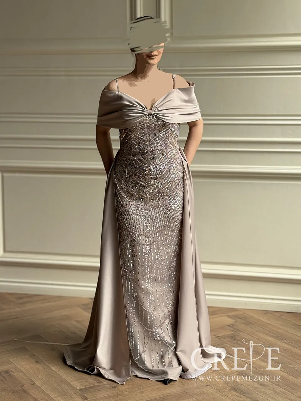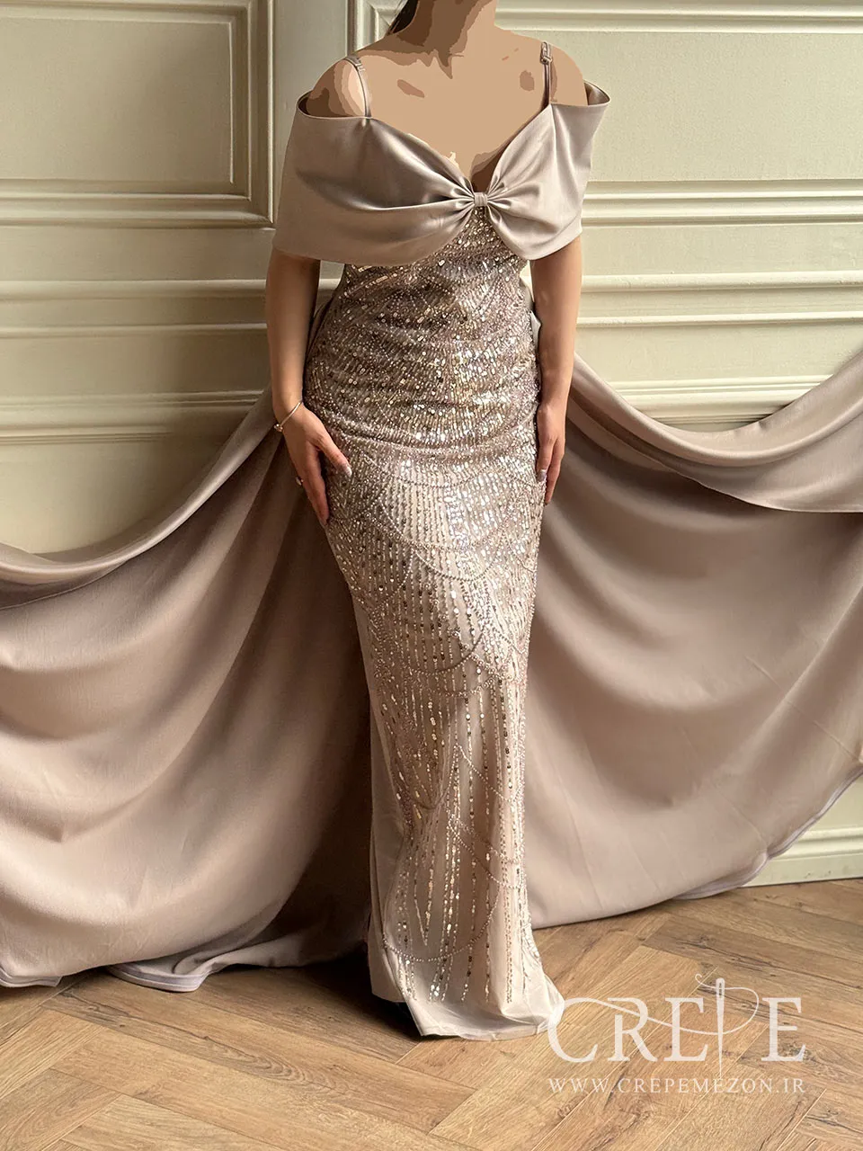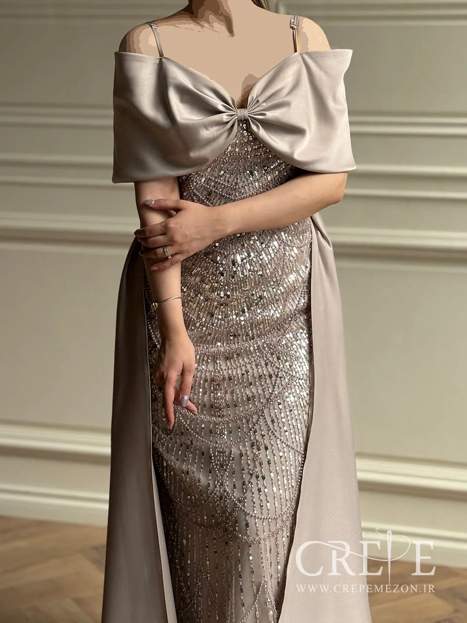 رنگ کرم این پیراهن مجلسی به عنوان یک رنگ ملایم و شیک، به راحتی با دیگر لباسها و اکسسوریها هماهنگ میشود و جلوهای باوقار به استایل شما میبخشد. طراحی یقه به صورت دکلته است که زیبایی خاصی به پیراهن میبخشد. حالت پاپیونی یقه به شانهها و قسمت بالای بدن پوشش میدهد و ظاهری زنانه و جذاب ایجاد میکند. پیراهن دارای دامن دومی است که از قسمت کمر به آن اضافه میشود و دنبالهدار بوده و هنگام راه رفتن جلوه زیبایی ایجاد میکند. این دنباله به حرکات شما لطافت و زیبایی بیشتری میبخشد و به پیراهن ظاهری مجلسی و خاص میدهد.