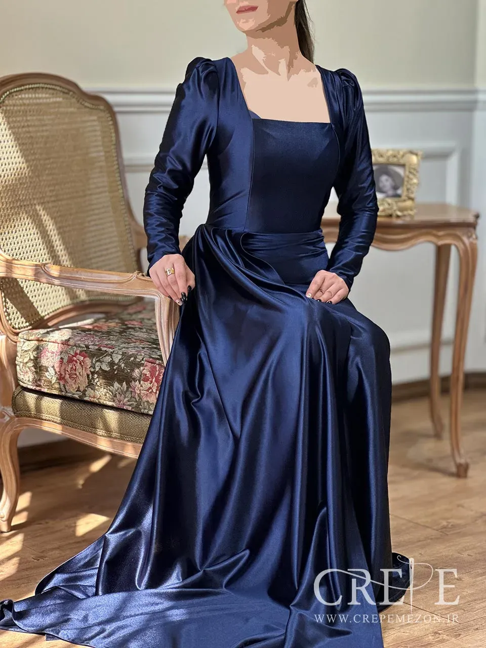 ماکسی ساتن کش شنلدار جلو پیله با آستین های بلند و یقه خشتی یک لباس مجلسی بسیار شیک که به دلیل پارچه ساتن براق هیچوقت از مد نمیفتد و همیشه ترند خواهد بود.