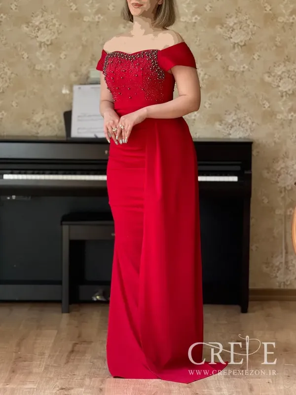 - 4. فرم بدن سیب : برای افرادی که بیشتر وزنشان در ناحیه شکم متمرکز است، استفاده از لباسهایی که تمرکز را بر روی گردن یا شانهها قرار دهد مانند این مدل دکلته بسیار مناسب خواهد بود.