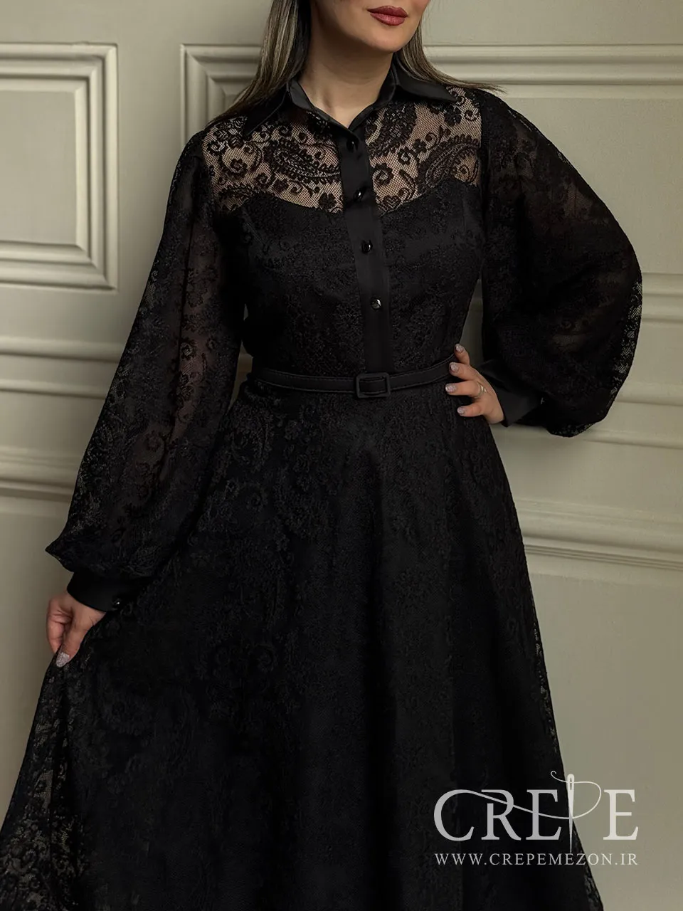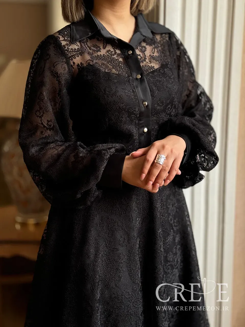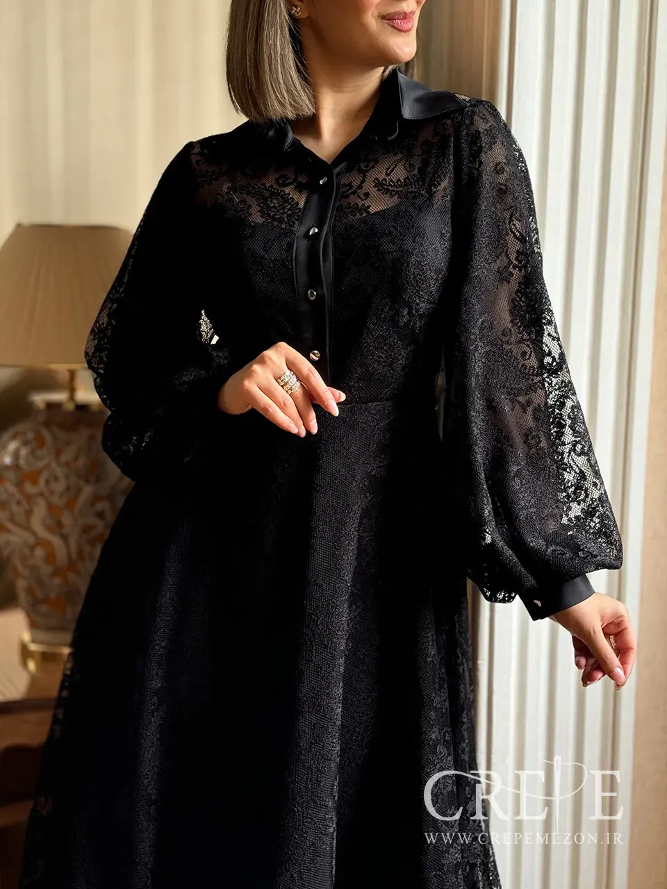 پیراهن تورگیپور و ساتن یک لباس مجلسی فوقالعاده شیک و جذاب که از ترکیب دو پارچه ساتن و تورگیپور طرحدار درجهیک دوخته شده. همچنین سایزبندی آن 40 تا 46 است.