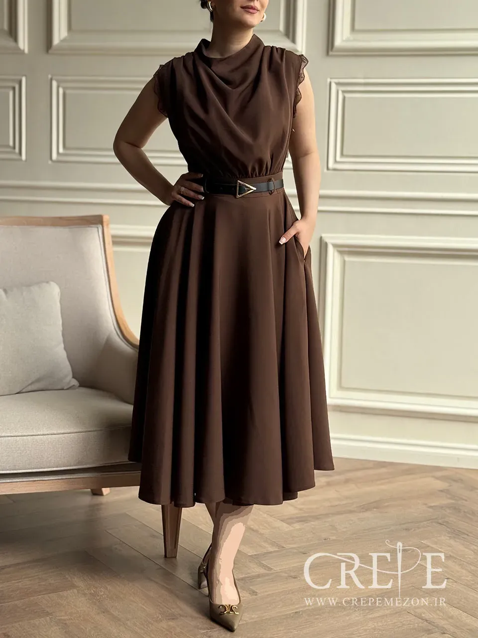 پیراهن کوتاه آستین حلقه یک لباس مجلسی شیک و دخترانه که دارای دو جیب کاربردی و پارچه کرپ باکیفیت میباشد. حلقه آستین ها برای زیبایی بیشتر باگیپور کار شده است.