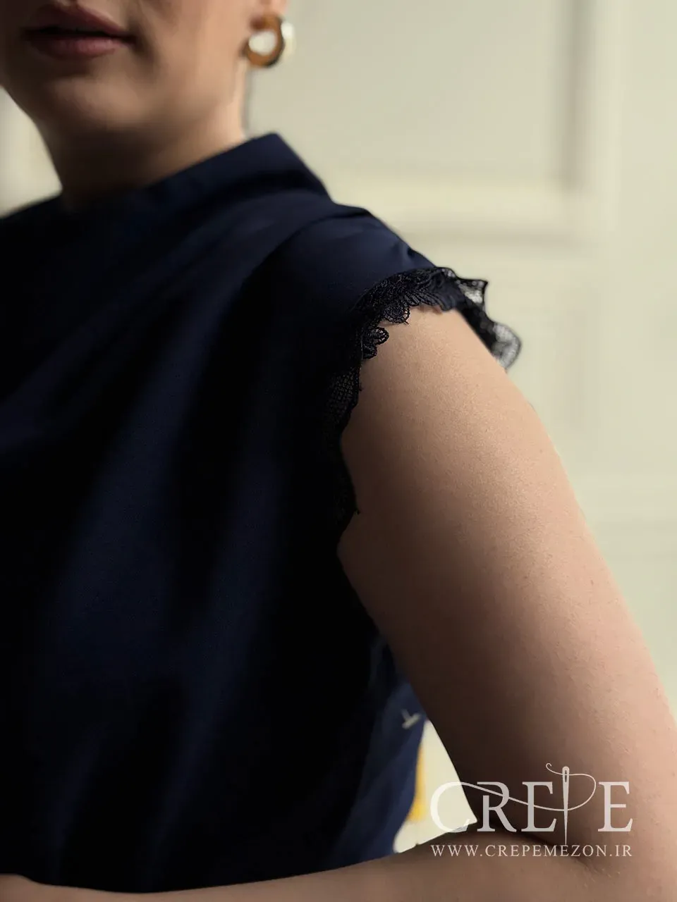 پیراهن کوتاه آستین حلقه حاشیه گیپور
