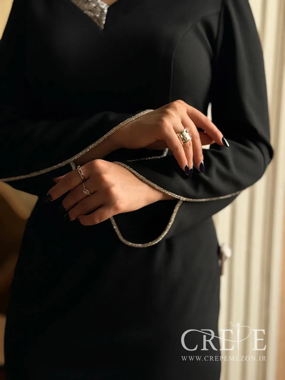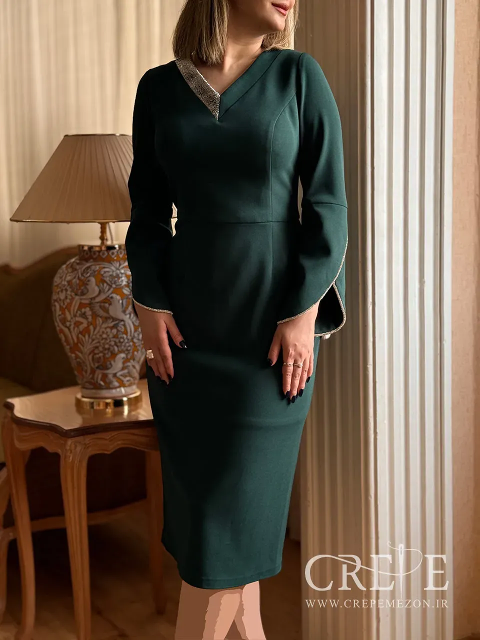 پیراهن میدی مغزی دوزی یک لباس مجلسی شیک که از جنس کرپ دالقیچ بوده و برای ایست بهتر از آستر و کاپ نیز استفاده شده است. همچنین خرید اقساطی 4 مرحله ای نیز دارد.