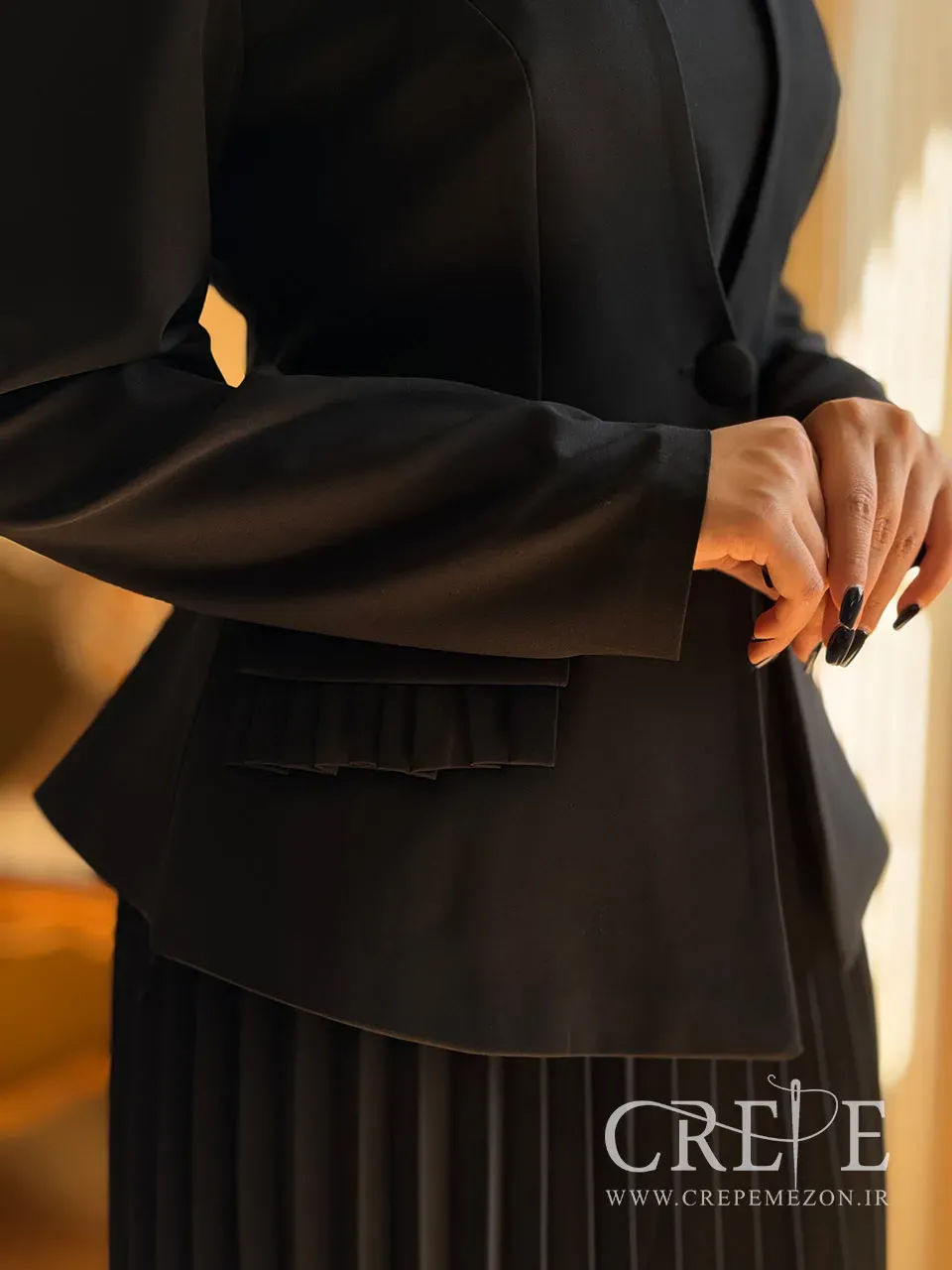 ست کت و سارافان پلیسه یک ست دوتیکه مجلسی و در عین حال پوشیده که تنوع انتخابی بالایی به شما خواهد داد. جنس پارچه کرپ گرم بالاست و لایه داخلی کت دارای آستر رویال می باشد. همچنین سارافان نیز به دلیل ایست بهتر و شکیل تر با آستر ژرسه کاور شده است. این ست دوتیکه شکیل برای تمامی مناسبت ها قابل استفاده بوده و تنوع انتخابی بالایی به شما خواهد داد. همچنین قد کت نیز از بلندای معقولی برخوردار است که از این رو حتی میتوان برای استایل های دیگری مانند کت و شلوار و یا کت دامن ست شده و دست شما را در استایل های جدید و شیک باز بگذارد. ست کت و سارافان پلیسه جزو ترند های جدید و محبوبی است که چون ماژور ترند می باشد عمر طولانی تری در دایره مد داشته و همیشه و همه جا برای شما قابل استفاده خواهد بود، فقط اگر از پارچه به درستی مراقبت کنید.