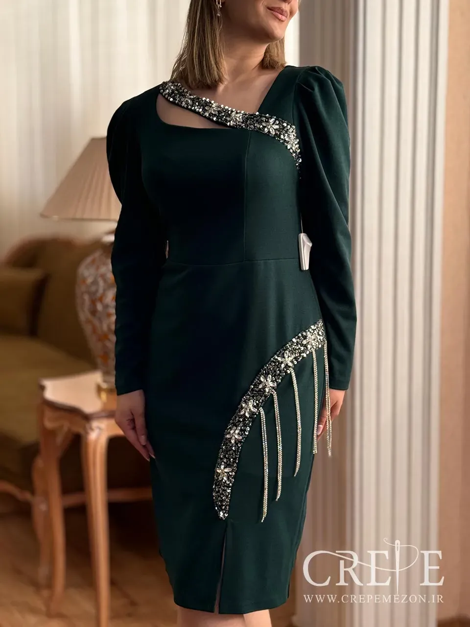 پیراهن سایزبزرگ ریسه ای یک لباس مجلسی جذاب و متفاوت که به محض پوشیدن توجهات را جلب شما می کند. جنس آن کرپ دالقیچ میباشد که از محبوب ترین پارچه های مجلسی ست.