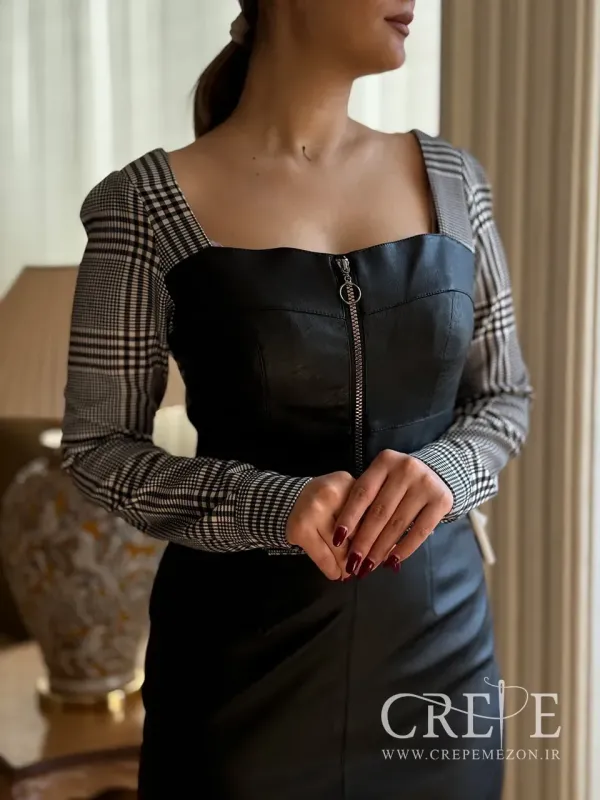 پیراهن چرم آستین چهارخونه یک پیراهن کوتاه شیک که آستین های آن از جنس کرپ طرحدار می باشد. همچنین خرید اقساطی اسنپ پی دارد که با پرداخت قسط اول ارسال می شود.
