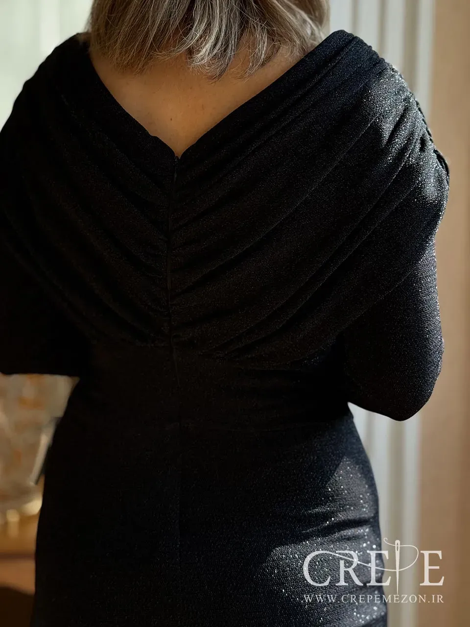 پیراهن یقه هفت لمه یکی از زیباترین لباس های مجلسی موجود در مزون که در حال حاضر در رنگبندی مشکی و سایزبندی 40 تا 46 موجود است. این پیراهن میدی زیبا همانطور که در تصویر می بینید شیک و مدرن است و به خاطر جنس درخشان و براق پارچه لمه جلوهای خاص و جذاب دارد. پیراهن های میدی معمولاً تا زانو یا کمی بالاتر از آن قرار میگیرد و با برشهای آزاد و راحت، به راحتی بر تن مینشینند. قد این پیراهن مجلسی نسبتا بلند است و طراحی آن میتواند تا حدودی پوشیده باشد. از این رو برای عزیزانی که دغدغه حجاب دارند گزینه محبوب و دوستداشتنی خواهد بود.