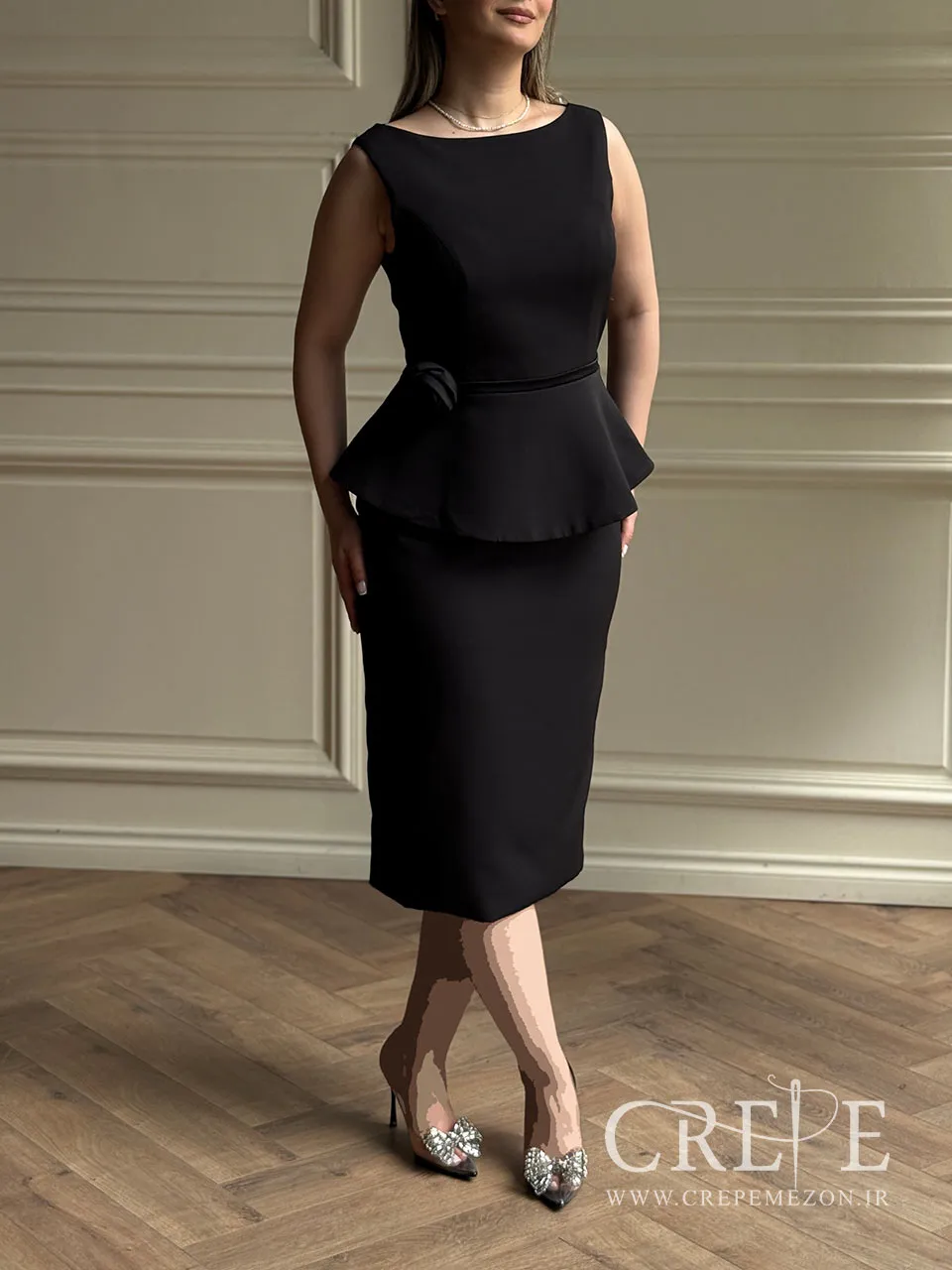 این لباس مجلسی میدی با تک گل دارای سیلوئت کلاسیک و شیکی است که تقریبا برای انواع اندام های بدنی مناسب است. جزئیات پپلوم در ناحیه کمر می تواند ظاهر فرم ساعت شنی را ایجاد کند چرا که بااریک ترین قسمت کمر را برجسته می سازد. به طور کلی، این مدل لباس می تواند بسیار چند منظوره و مناسب برای اندام های مختلف از ظریف تا درشت تر باشد، زیرا پپلوم و دامن A-line می تواند تناسب های مختلف را متعادل و زیبا جلوه دهد. همچنین برای عزیزانی که دارای بالاتنه بزرگتری اند نیز مناسب است. قسمت پپلوم دامن آن تعادل را بین بالاتنه و پایین تنه ایجاد می کند.