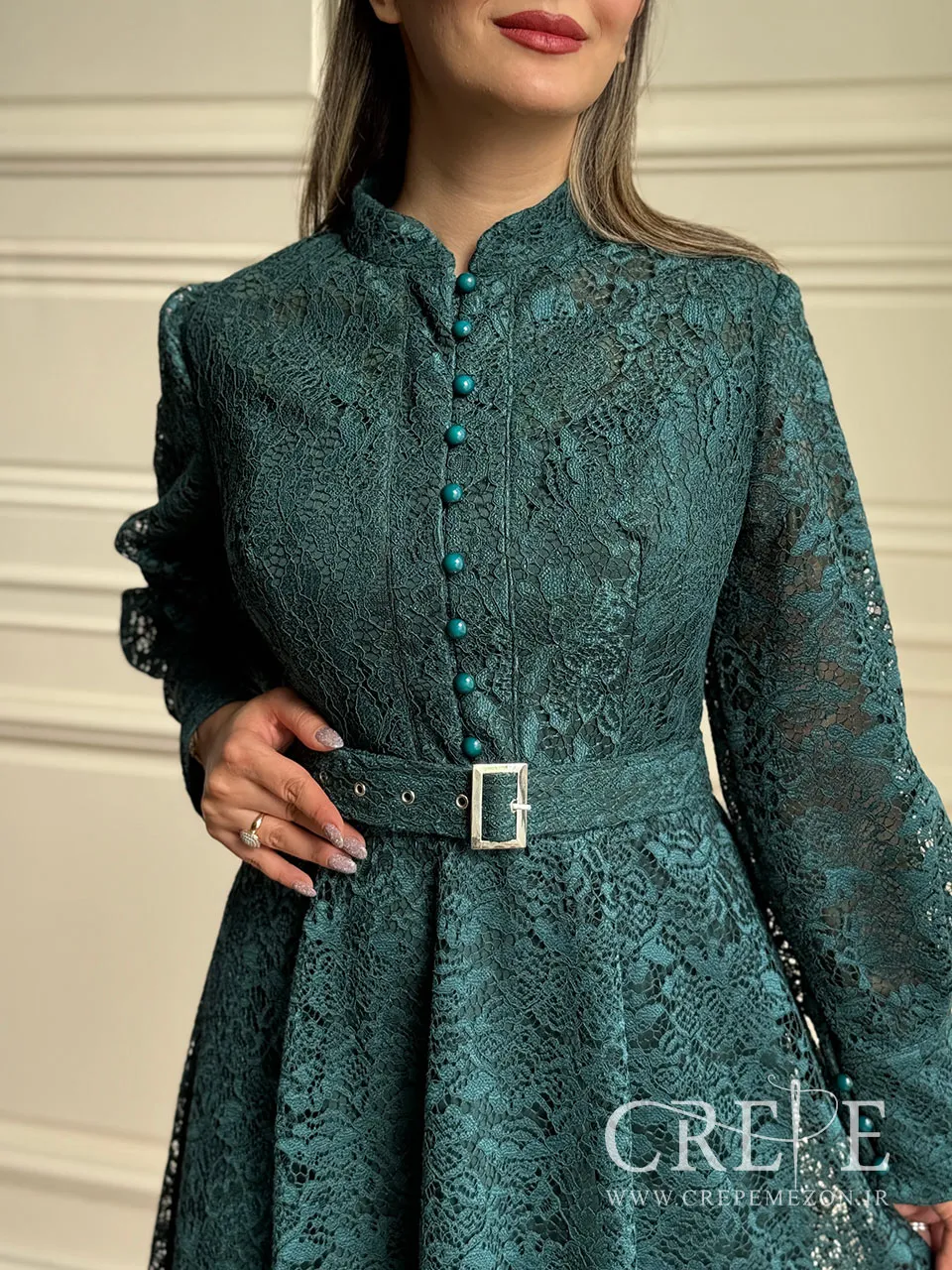 پیراهن گیپور جلو دکمه یک لباس مجلسی کمربند دار و آستردار که از جنس گیپور می باشد. همچنین با ظرافت و کیفیت بسیار بالایی دوخته شده و رنگبندی متنوعی دارد.
