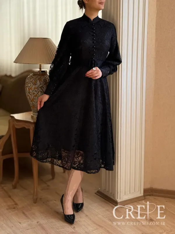 این کمربند میتواند به شکل دلخواهی تنظیم شود و زیبایی بیشتری به استایل شما ببخشد. فرم پیراهن کلوش است، به این معنا که در پایین لباس به تدریج گشادتر میشود، در حالی که بالاتنه آن فیت و اندامی است. این طراحی باعث میشود که پیراهن به خوبی بر روی بدن بنشیند و در عین حال راحتی را نیز به ارمغان بیاورد. این پیراهن کمربند دار در رنگهای مشکی، سرمهای و نخودی موجود است که هر کدام از این رنگها ظاهری جذاب و شیک به لباس میبخشند و امکان انتخاب بر اساس سلیقه شخصی را فراهم میکنند. این پیراهن گیپور زنانه با طراحی خاص و جزئیات دقیق، گزینهای مناسب برای مهمانیها، مراسم رسمی و حتی استفاده روزمره است.