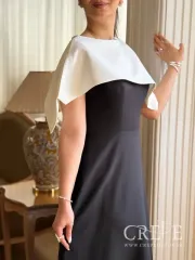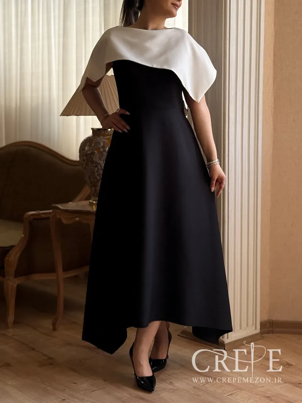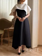 طراحی یقه گرد این لباس نیز باعث میشود که فرم آن به صورت متناسب و زیبا باقی بماند. یکی از ویژگیهای منحصر به فرد این پیراهن، قابلیت جداشدن قسمت بالاتنه سفید است. این ویژگی به شما این امکان را میدهد که در صورت تمایل، دوخت پارچه سفید را باز کرده و پیراهن را به فرم سارافان تبدیل کنید که این امر آن را برای موقعیتهای مختلف قابل استفاده میکند. پیراهن دامن بغل هشتی با طراحی شیک، گزینهای مناسب برای خانمها در مجالس و مهمانیها به زیبایی و راحتی ظاهر شوند.