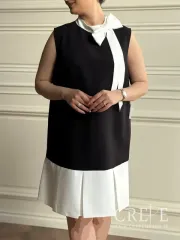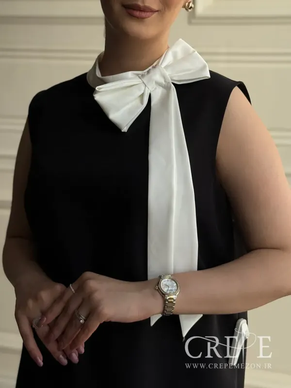 سارافون یقه پاپیونی یک پیراهن مجلسی زیبا که از جنس کرپ بوده و با رنگ سفید و مشکی طراحی شده است. این سارافون یقه پاپیونی مینیمال در سایزبندی 38-42 موجود است.