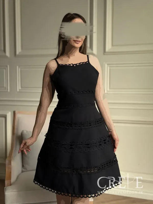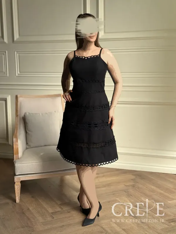 پیراهن میدی لیزری وارا یک لباس مجلسی زیبا که از جنس کتان بوده و دارای کاپ و آستر کتان نیز می باشد. این پیراهن در سایزبندی 46-40 و رنگ مشکی موجود شده است.